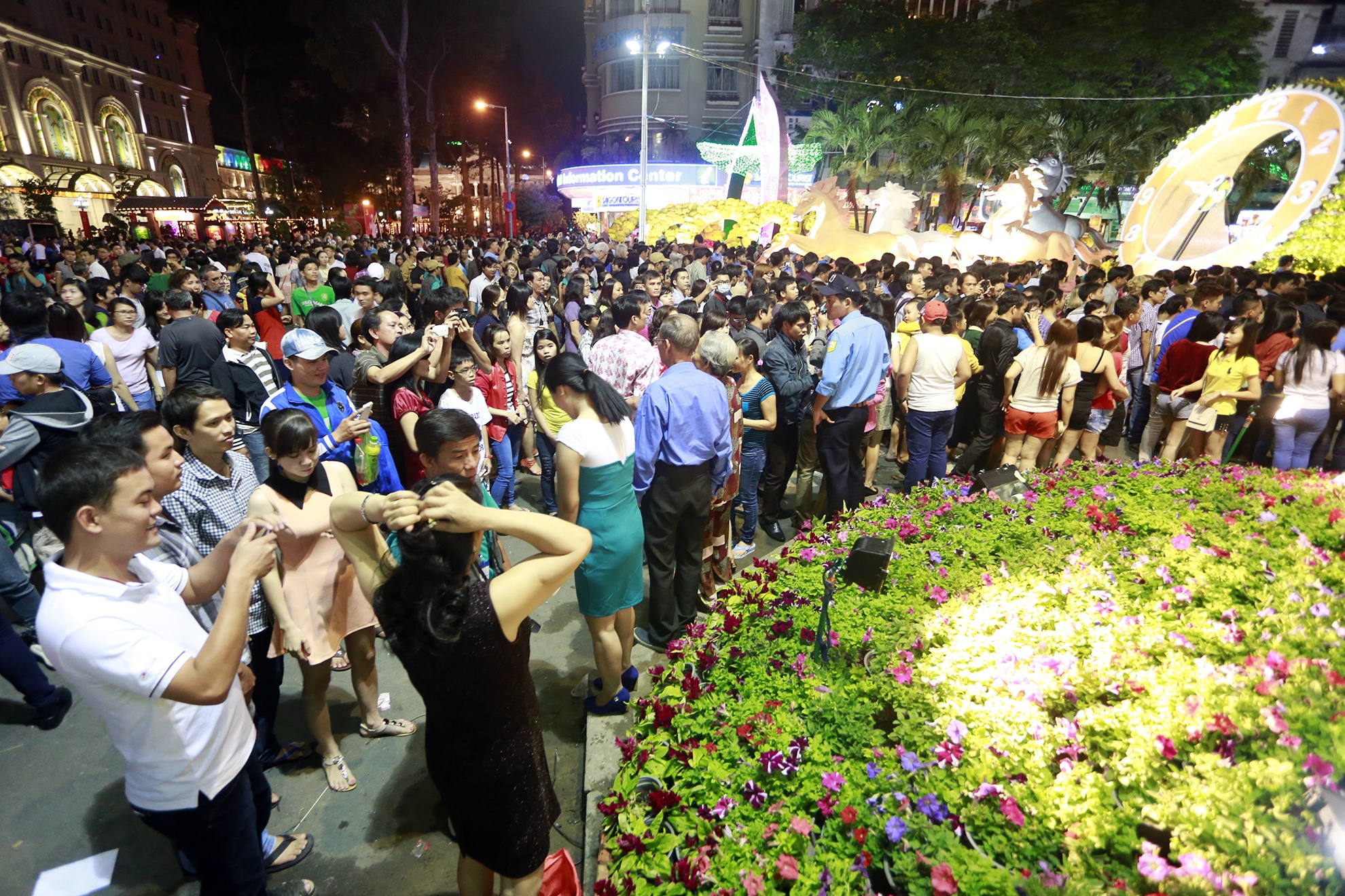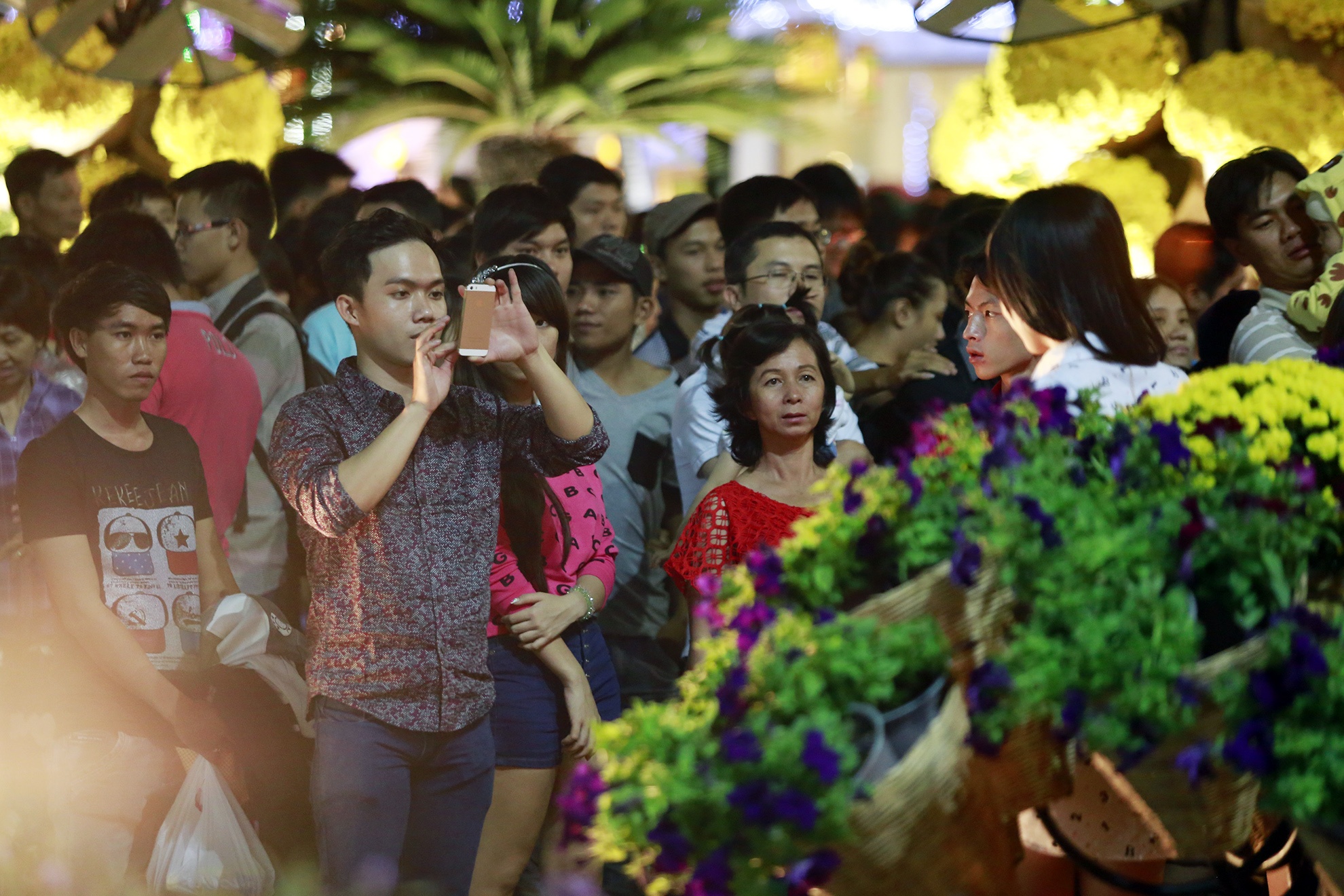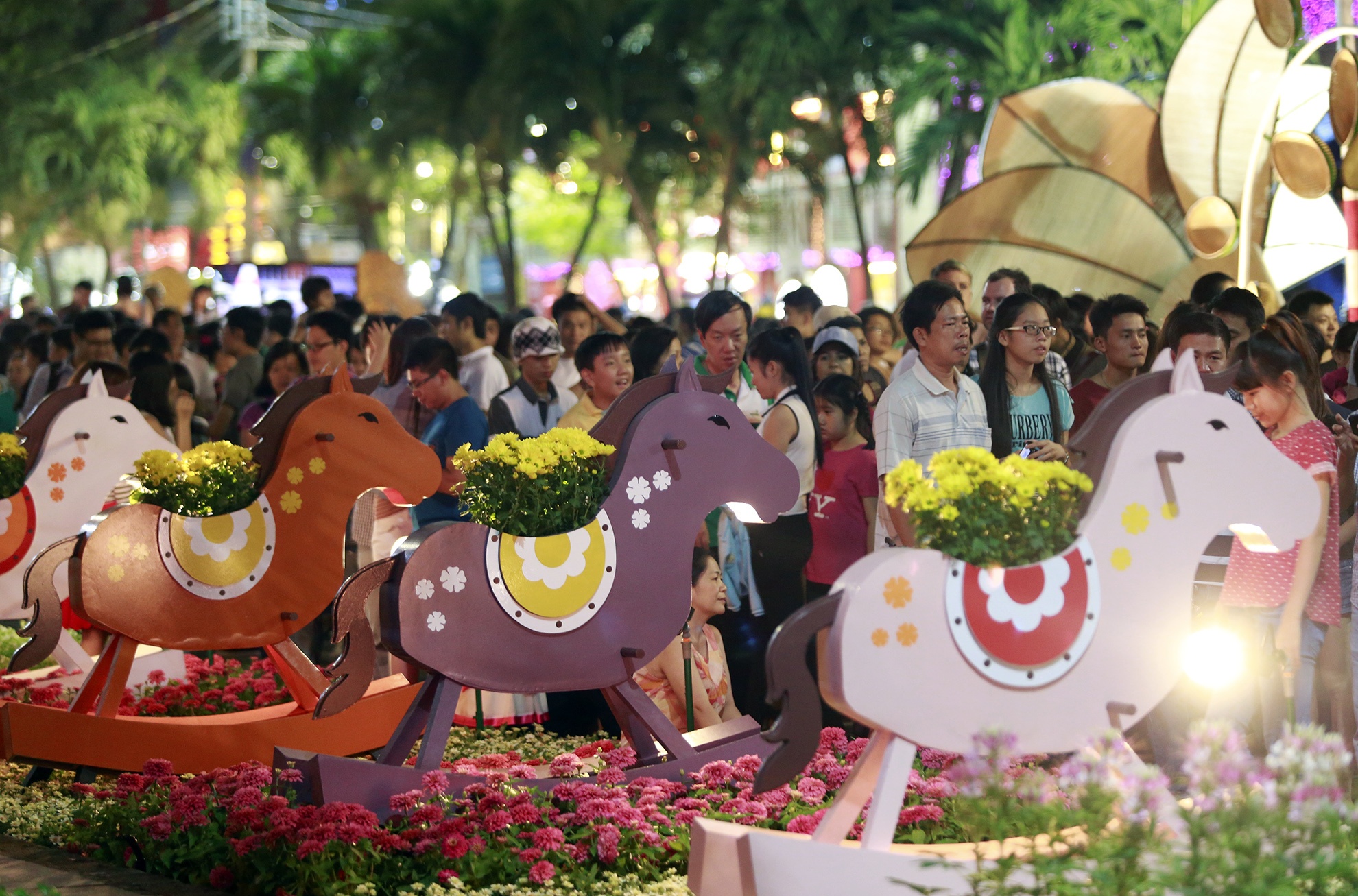 | Trăm hoa đua sắc trên đường hoa Nguyễn Huệ. |