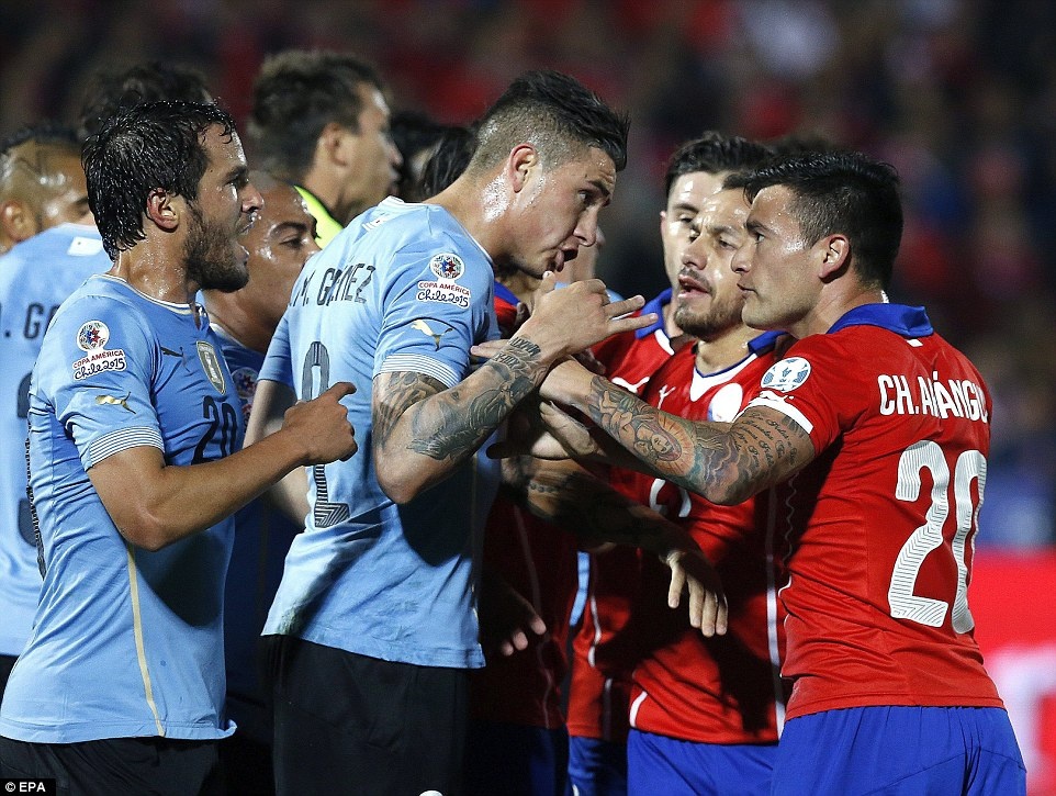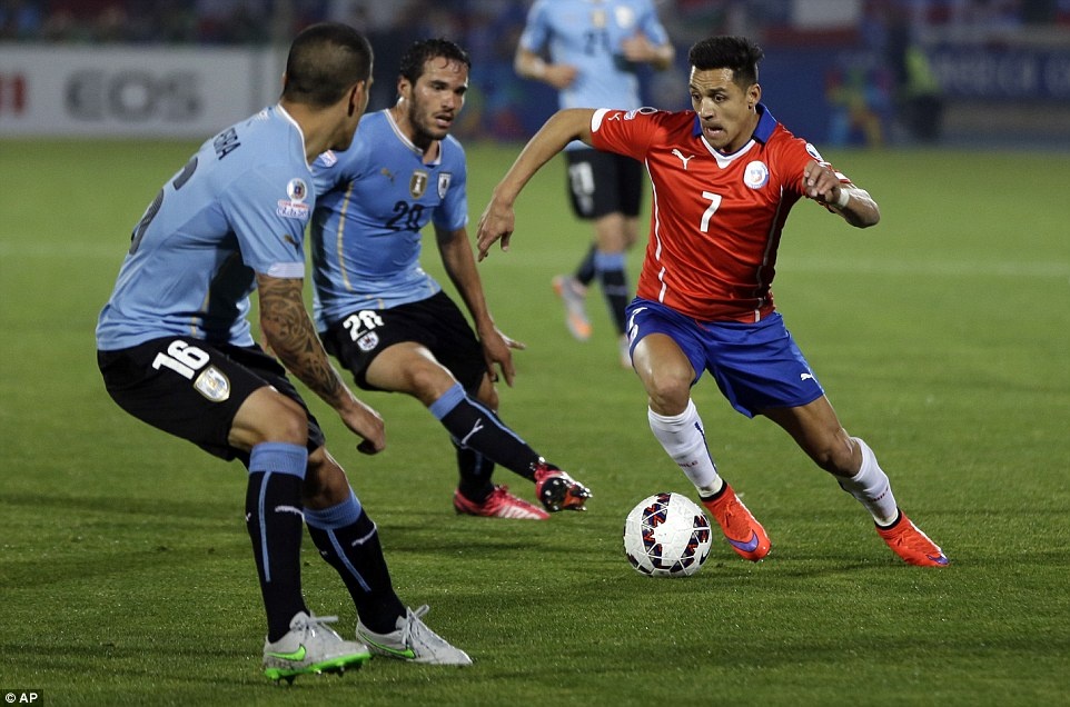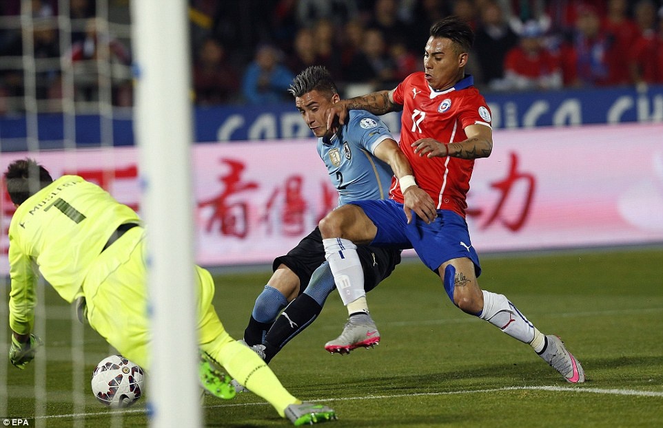 | Chile là đội chơi tốt hơn trong phần lớn thời gian. Tuy nhiên, những pha dứt điểm của Vargas, Sanchez và Vidal đều không khoan thủng được hàng phòng ngự của Uruguay. |