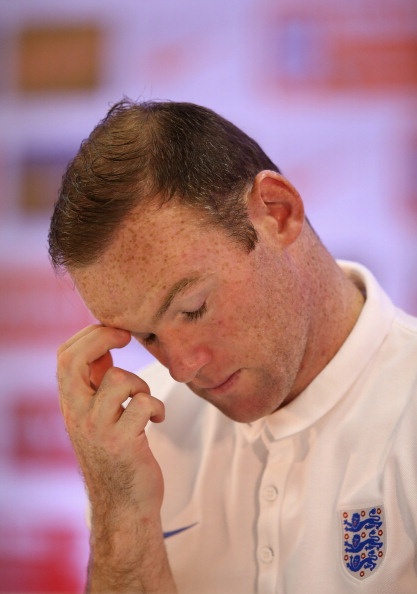 | Rooney mệt mỏi khi phải trả lời những câu hỏi của truyền thông quốc tế trong buổi họp báo về việc tuyển anh bị loại tại World Cup 2014. |