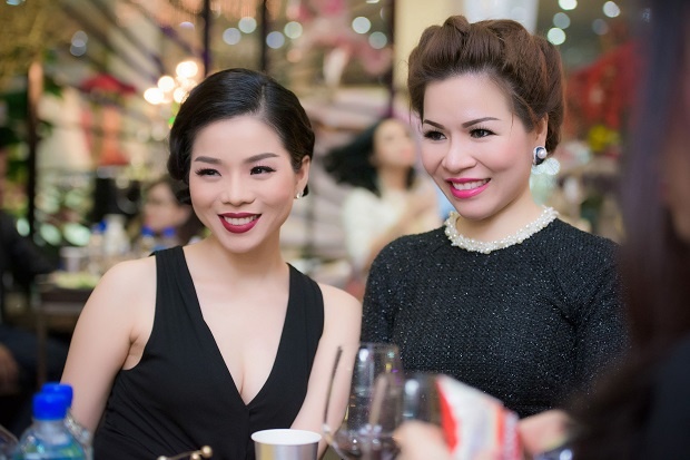 | Nữ hoàng phòng trà Lệ Quyên diện trang phục mang gam màu đen quý phái. Hai mỹ nhân rạng rỡ, tươi tắn khoe sắc trước ống kính. |