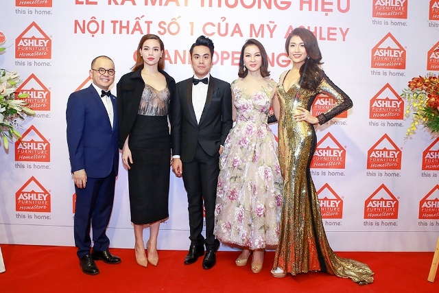 | Hoa hậu Quý bà 2014 gây được sự chú ý với hình ảnh nền nã, thanh lịch trong thiết kế mang phong cách quý cô Chanel của Công Trí cùng cách vấn tóc, trang điểm nhẹ nhàng, tự nhiên trong sự kiện. Doanh nhân Nguyễn Thanh Thủy (Selena Thanh Thủy) - Chủ tịch Hội đồng quản trị kiêm Tổng giám đốc Công ty Golden Sun cũng tới chúc mừng doanh nhân Dương Quốc Nam khai trương cửa hàng nội thất Mỹ Ashley tại Hà Nội. |