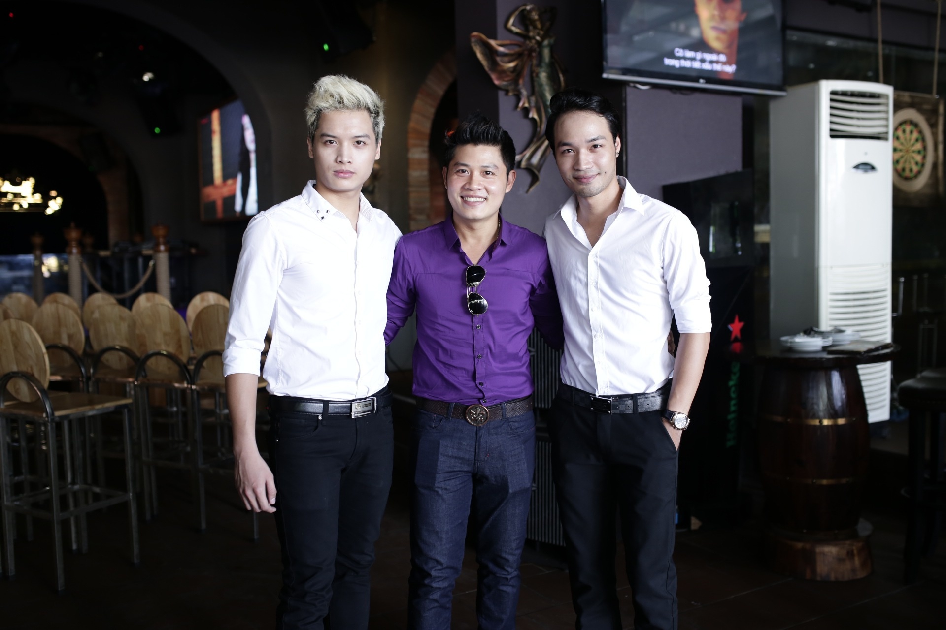 Anh chụp ảnh cùng các ca sĩ trẻ.