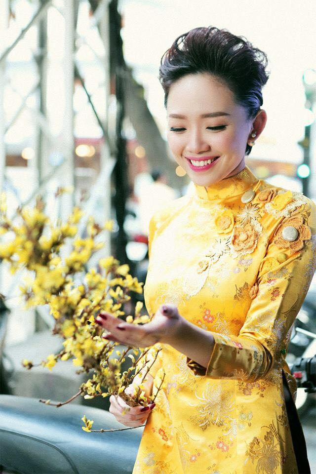Tóc Tiên diện một thiết kế gam màu vàng nề nã thực hiện bộ ảnh chủ đề xuân Ất Mùi.