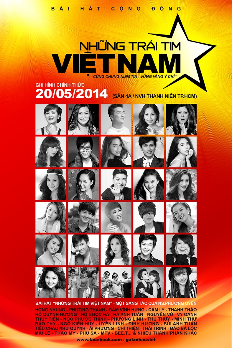| Dàn nghệ sĩ cùng tham gia góp mặt trong MV Những trái tim Việt Nam. |
