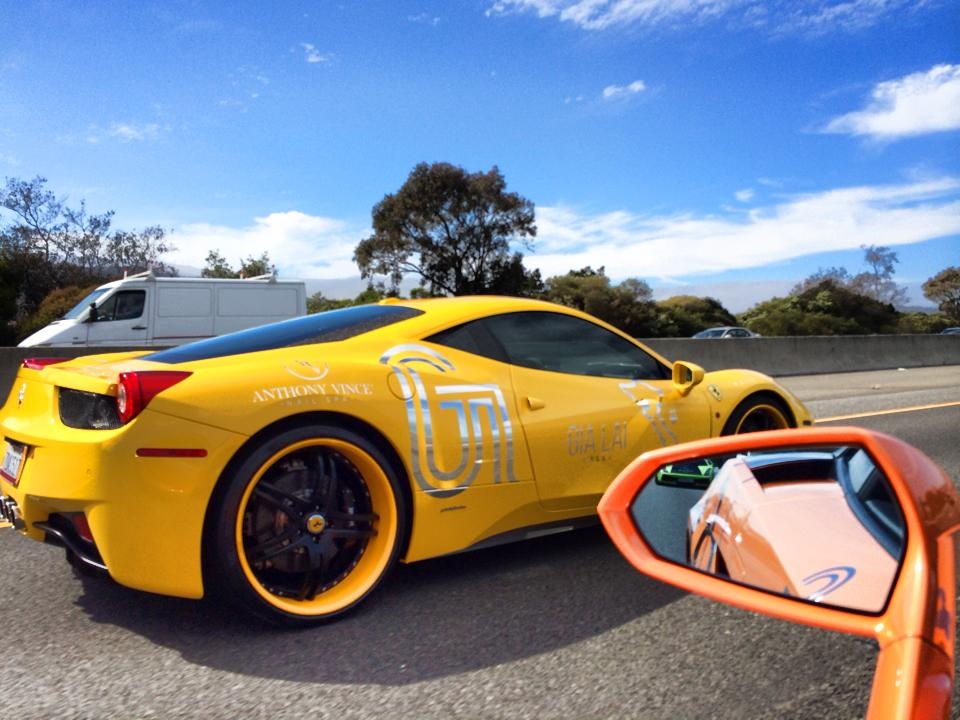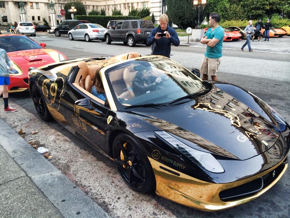 | Một chiếc Ferrari 458 Italia khác sơn vàng toàn thân. |