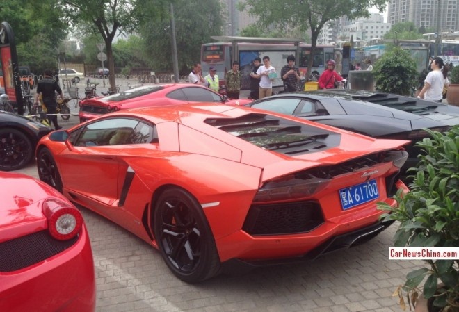 | Lamborghini Aventador màu cam với biển số mang số hiệu 700. |