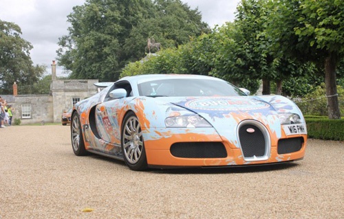 | "Người quen cũ" của lễ hội Wilton House Classic 2012, siêu xe Bugatti Veyron trong bộ cánh lòe loẹt, lấy cảm hứng từ nghệ thuật vẽ Graffiti. |
