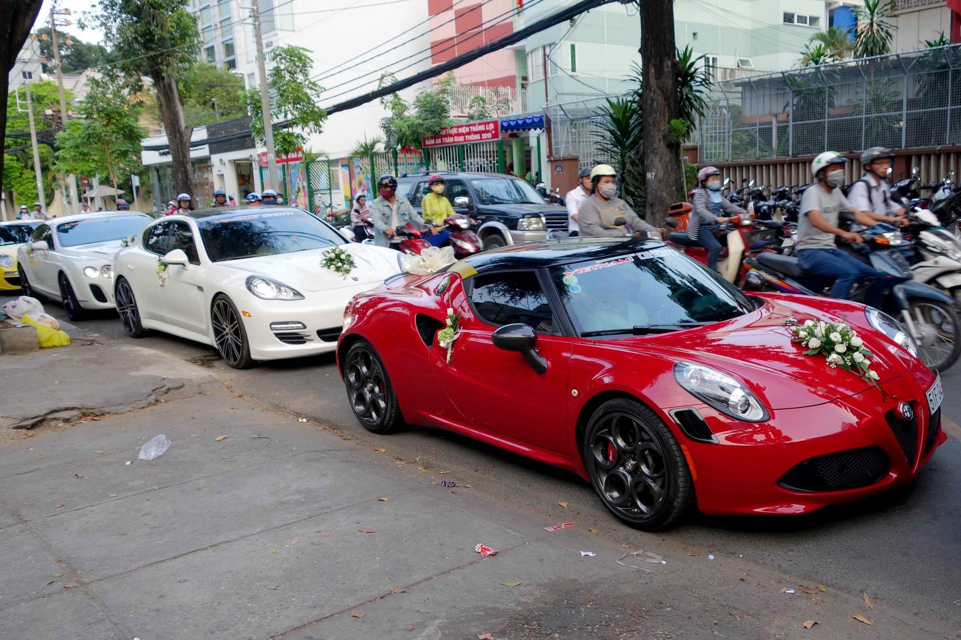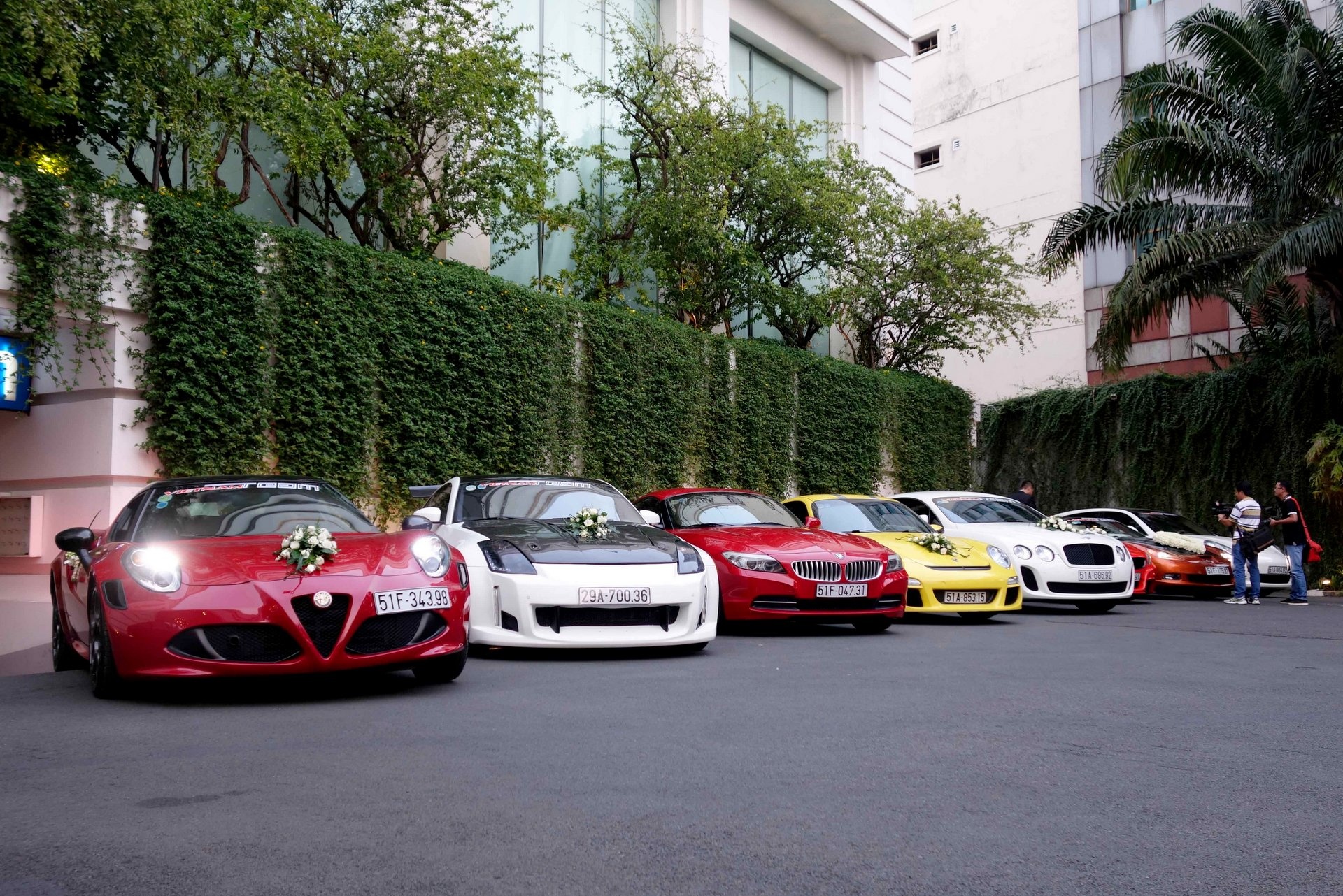 Bentley Supersports, Alfa Romeo 4C, Porsche 911 Vorsteiner cùng hàng chục mẫu xe đắt tiền cùng tham dự đám cưới một thành viên Vietnam Team.