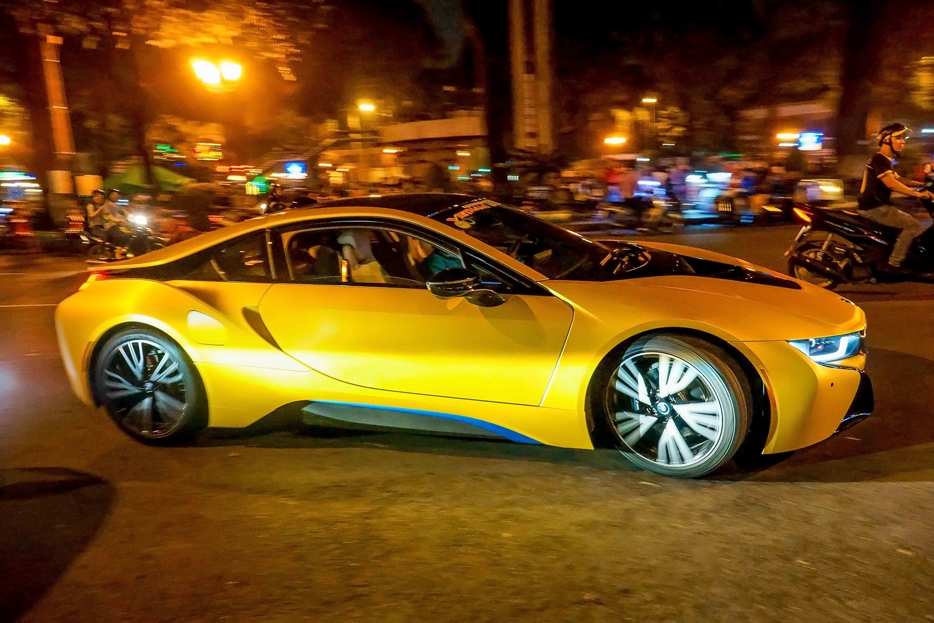 | BMW i8 được chủ xe sơn màu vàng độc nhất Việt Nam, trong khi màu màu gốc của xe là đen. |