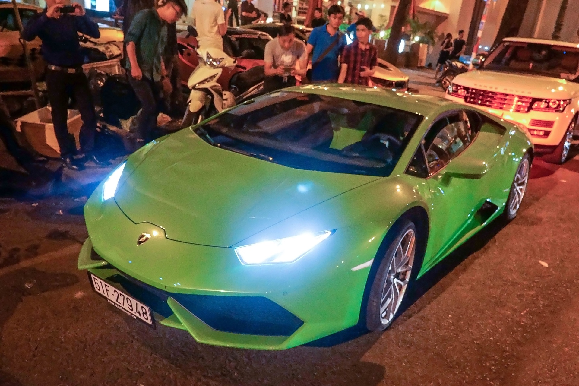 | Lamborghini Huracan màu xanh cốm độc nhất Việt Nam của một người chơi xe trẻ tuổi. Kể từ khi đưa về nước, siêu xe này xuất hiện khá nhiều lần trên phố. |