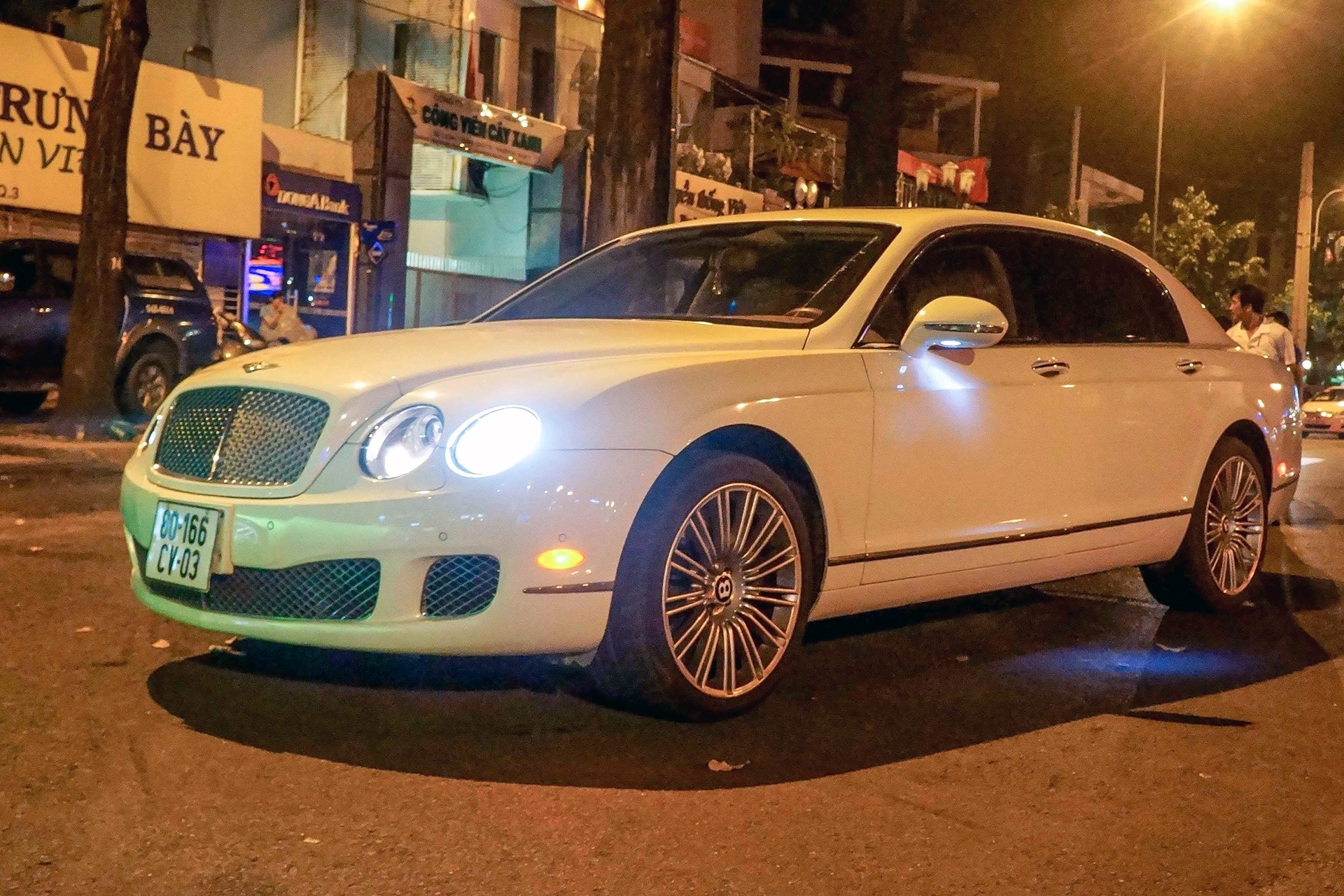 | Mẫu sedan siêu sang Bentley Continental Flying Spur trong bộ cánh trắng nổi bật. |