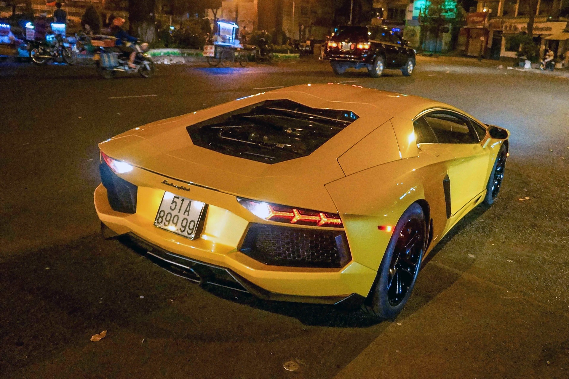 | Siêu xe Lamborghini Aventador LP700-4 màu vàng về Việt Nam từ năm 2012. Mặc dù vậy, siêu xe này hiếm khi xuất hiện trên đường phố. Giá trị của Aventador tại Việt Nam được cho lên đến hơn 20 tỷ đồng. |