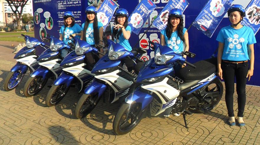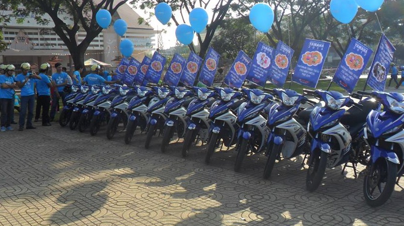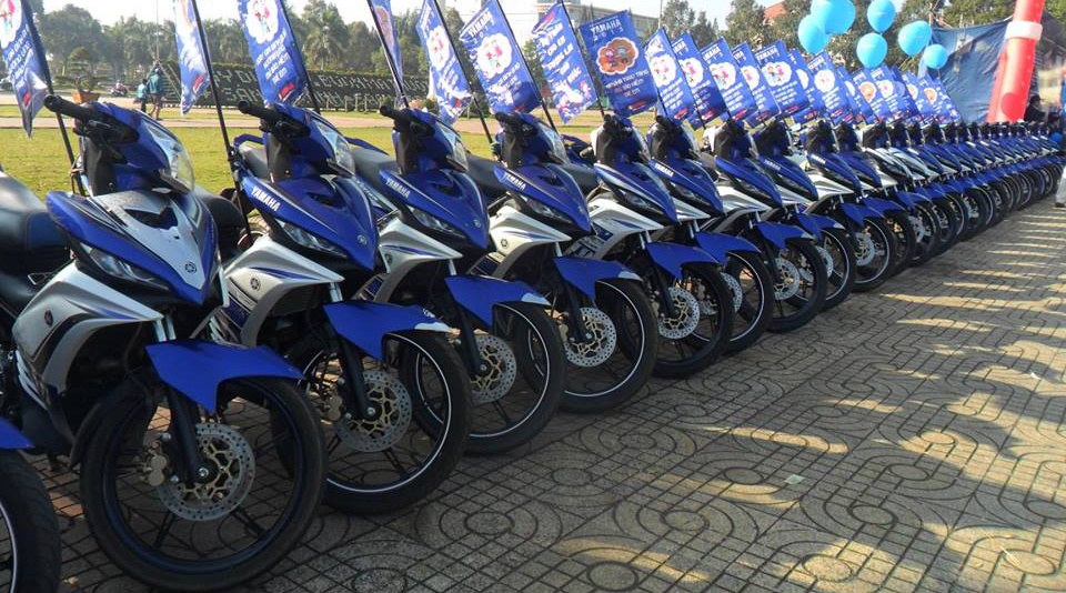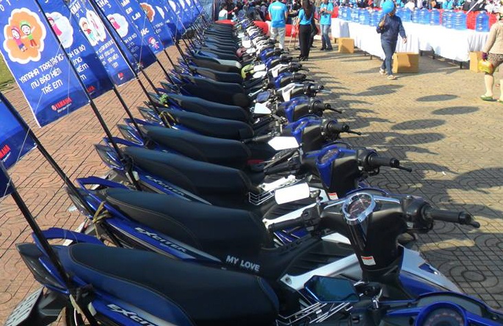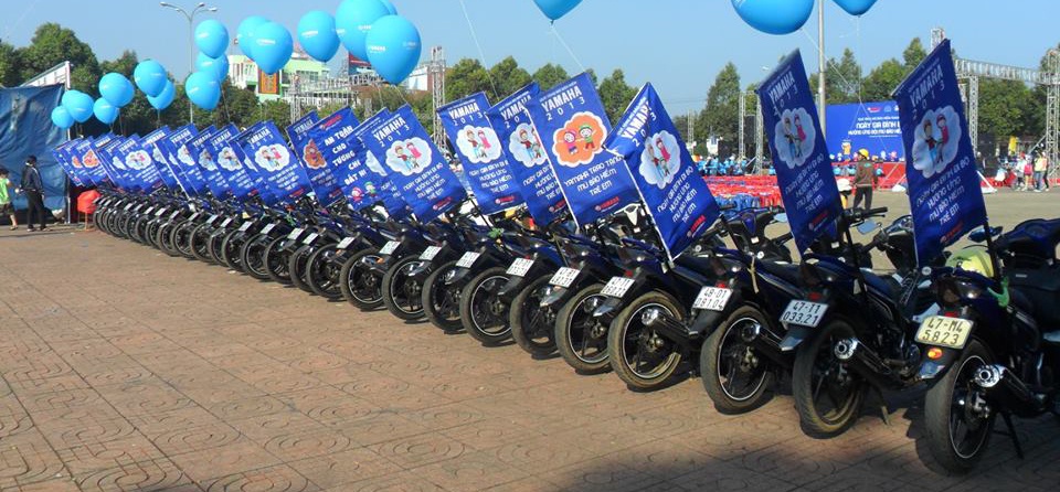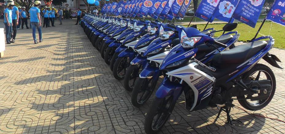 | ...31 chiếc Exciter GP đi thành hai hàng cỗ vũ phong trào đội mũ bảo hiểm cho trẻ em ở Đắk Lắk. |