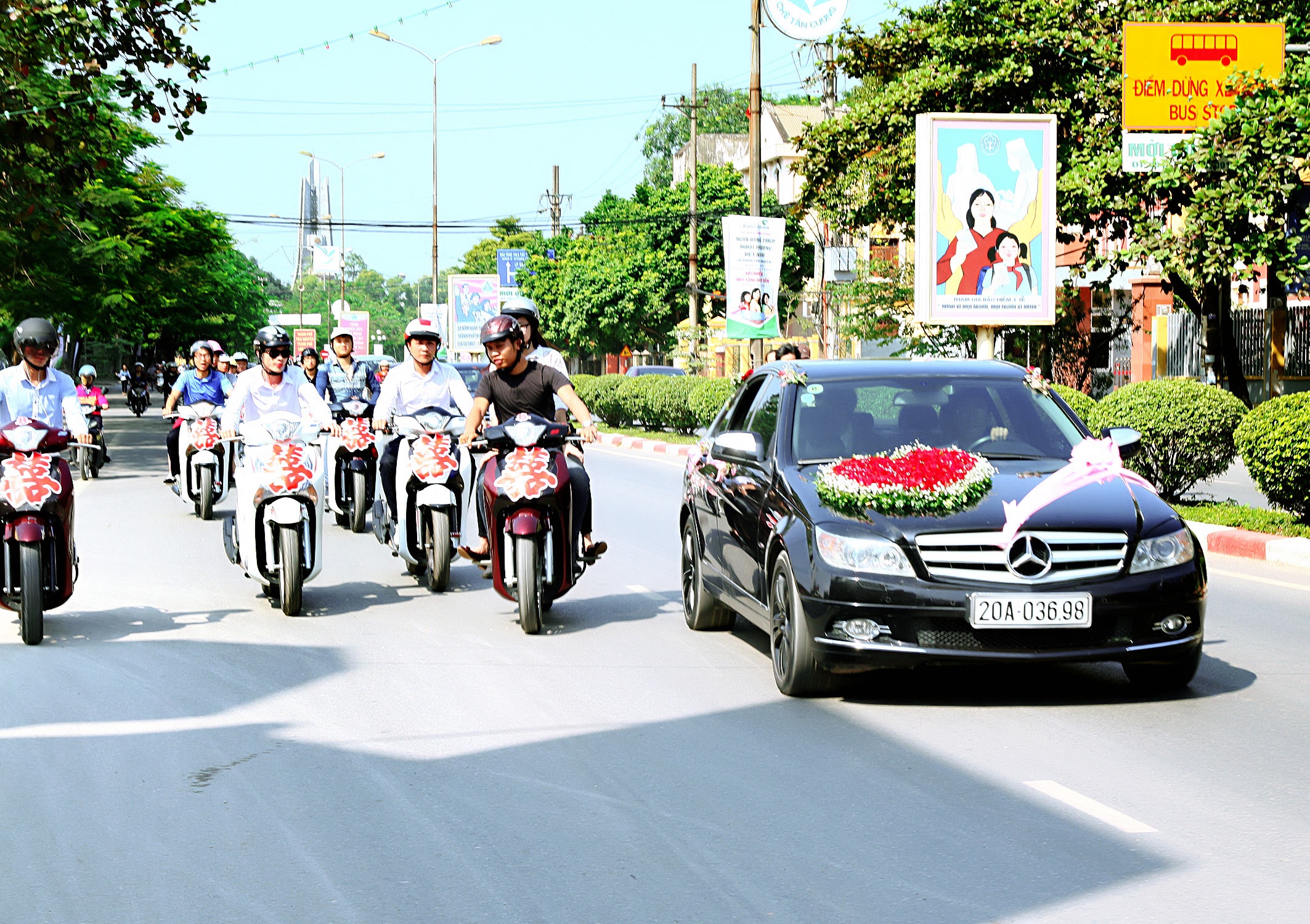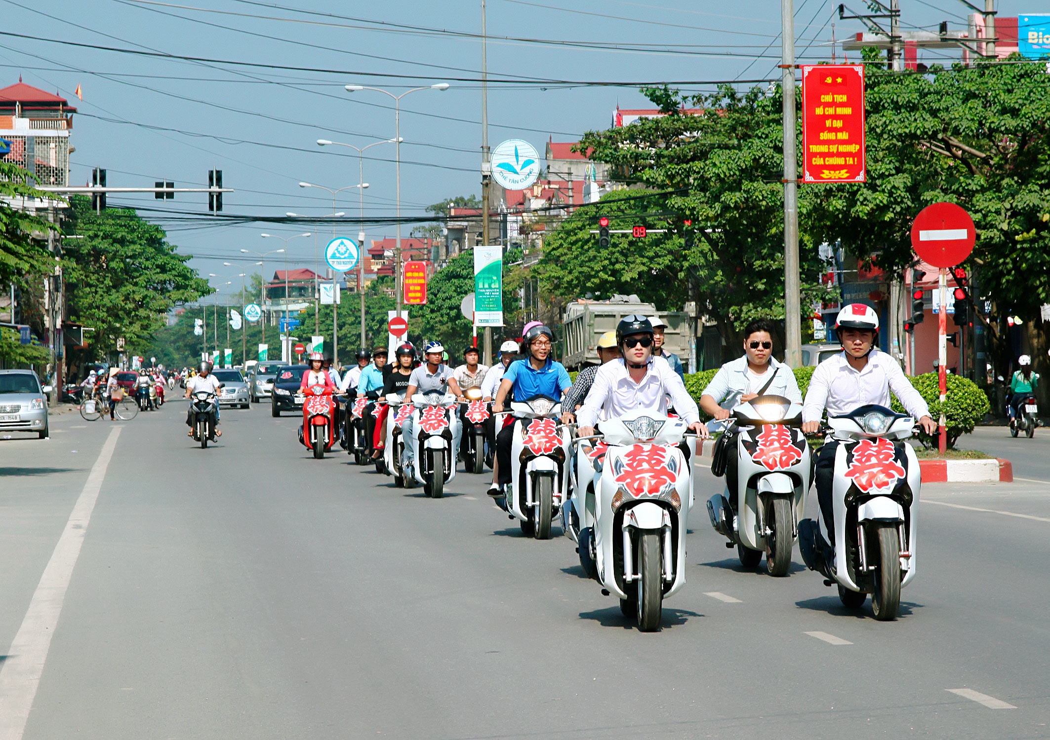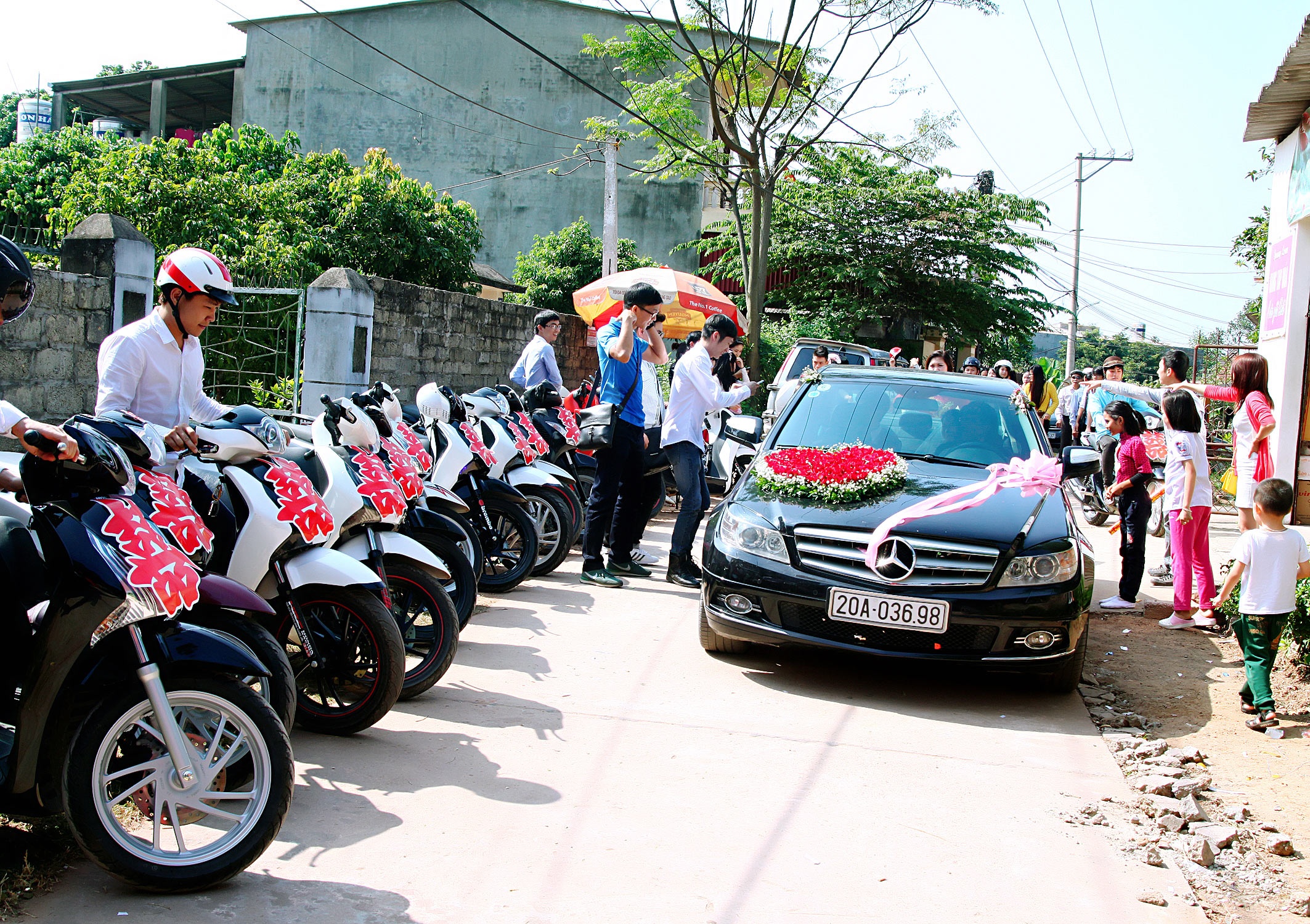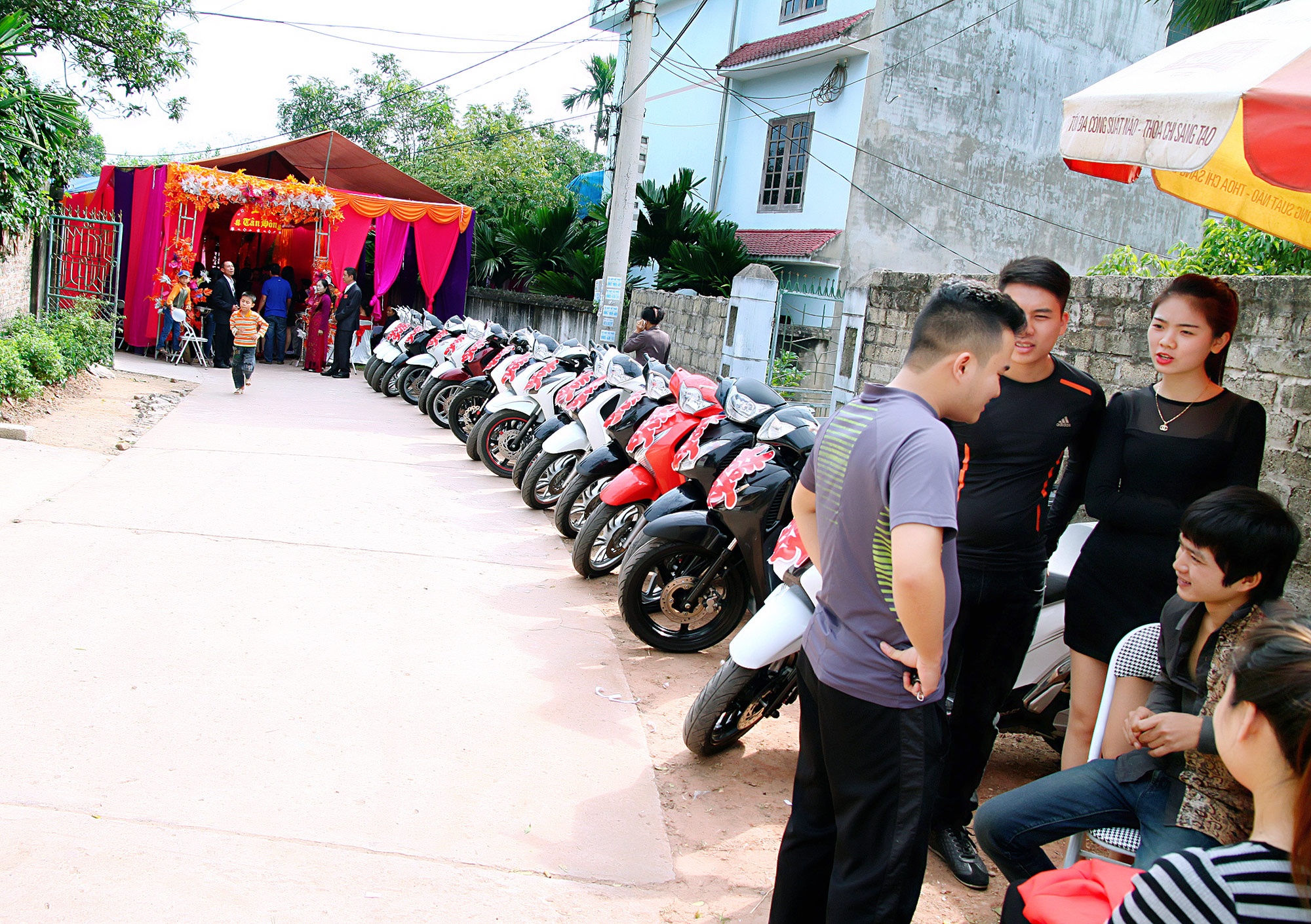 | Khoảng cách từ nhà chú rể đến nhà cô dâu chỉ khoảng 5km và đám cưới của cặp đôi có sự góp mặt của dàn xe Honda SH. |