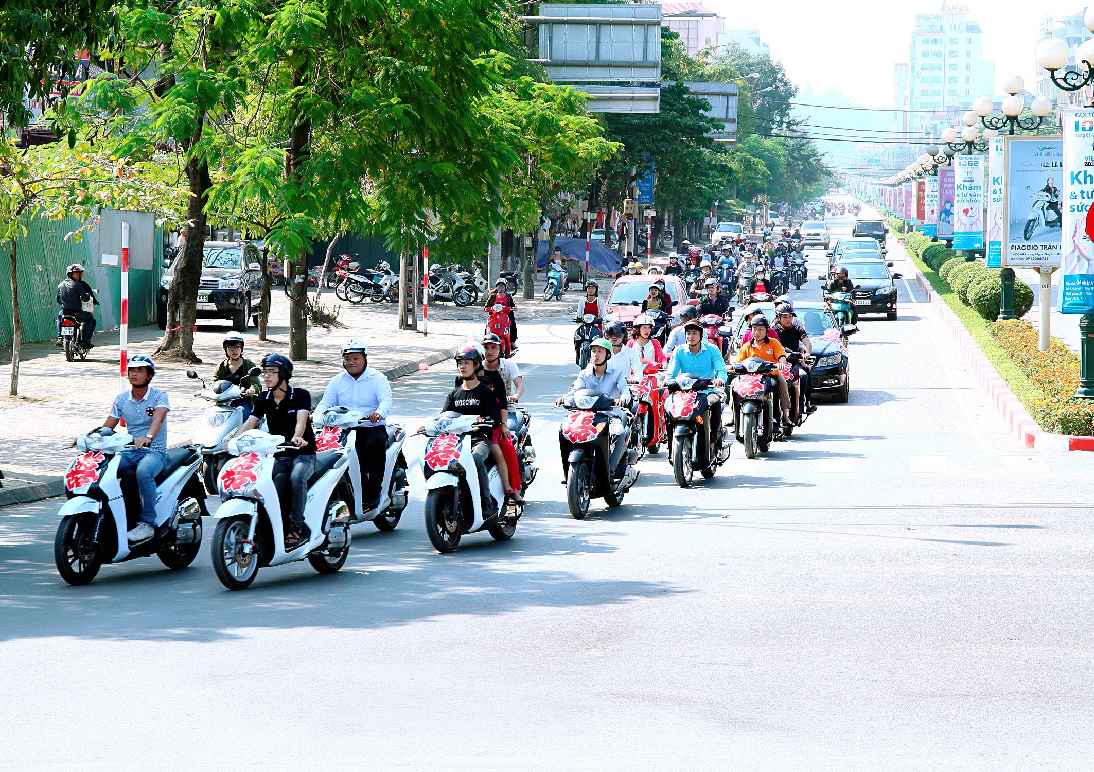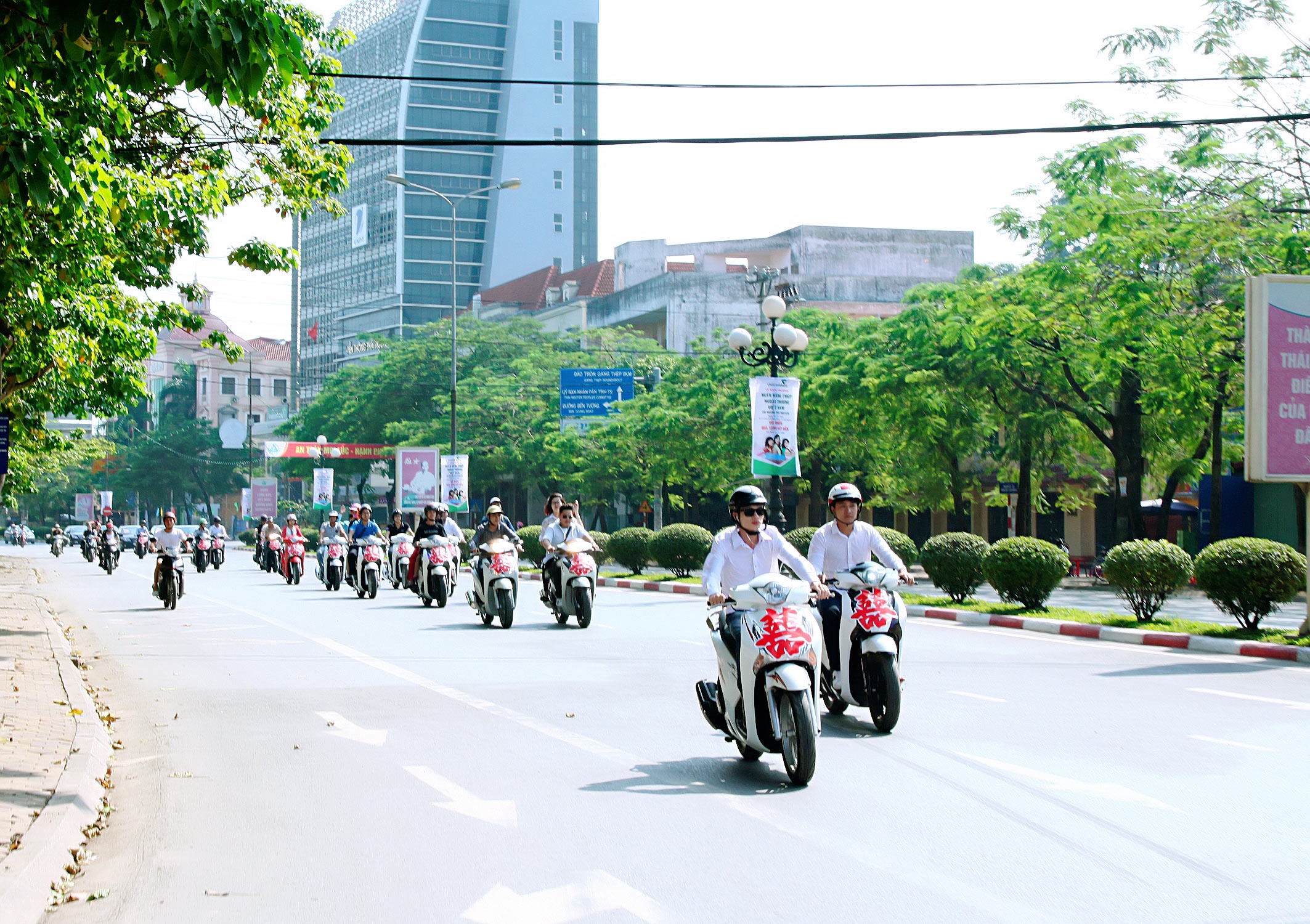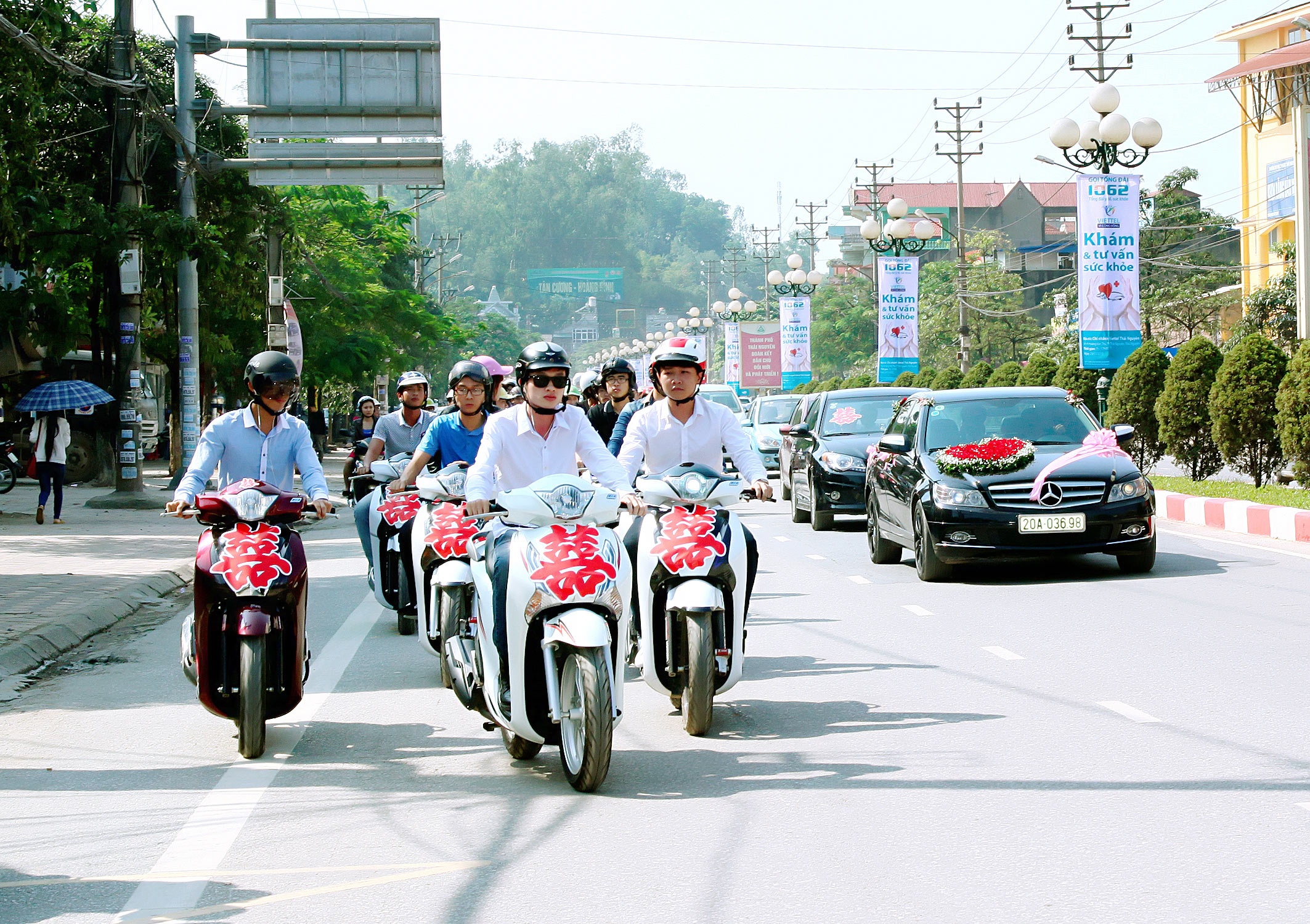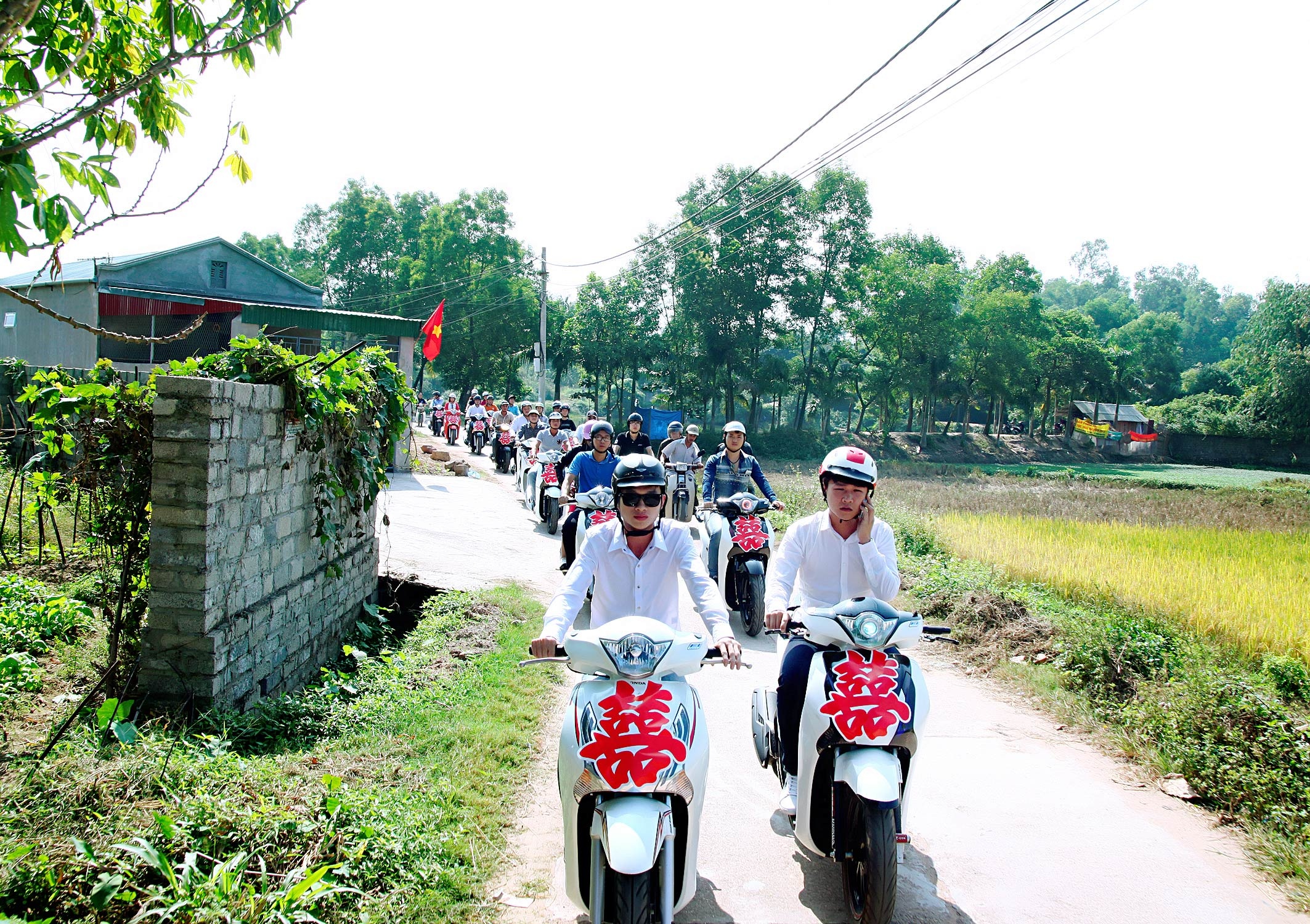 | Khoảng cách từ nhà chú rể đến nhà cô dâu chỉ khoảng 5km và đám cưới của cặp đôi có sự góp mặt của dàn xe Honda SH. |