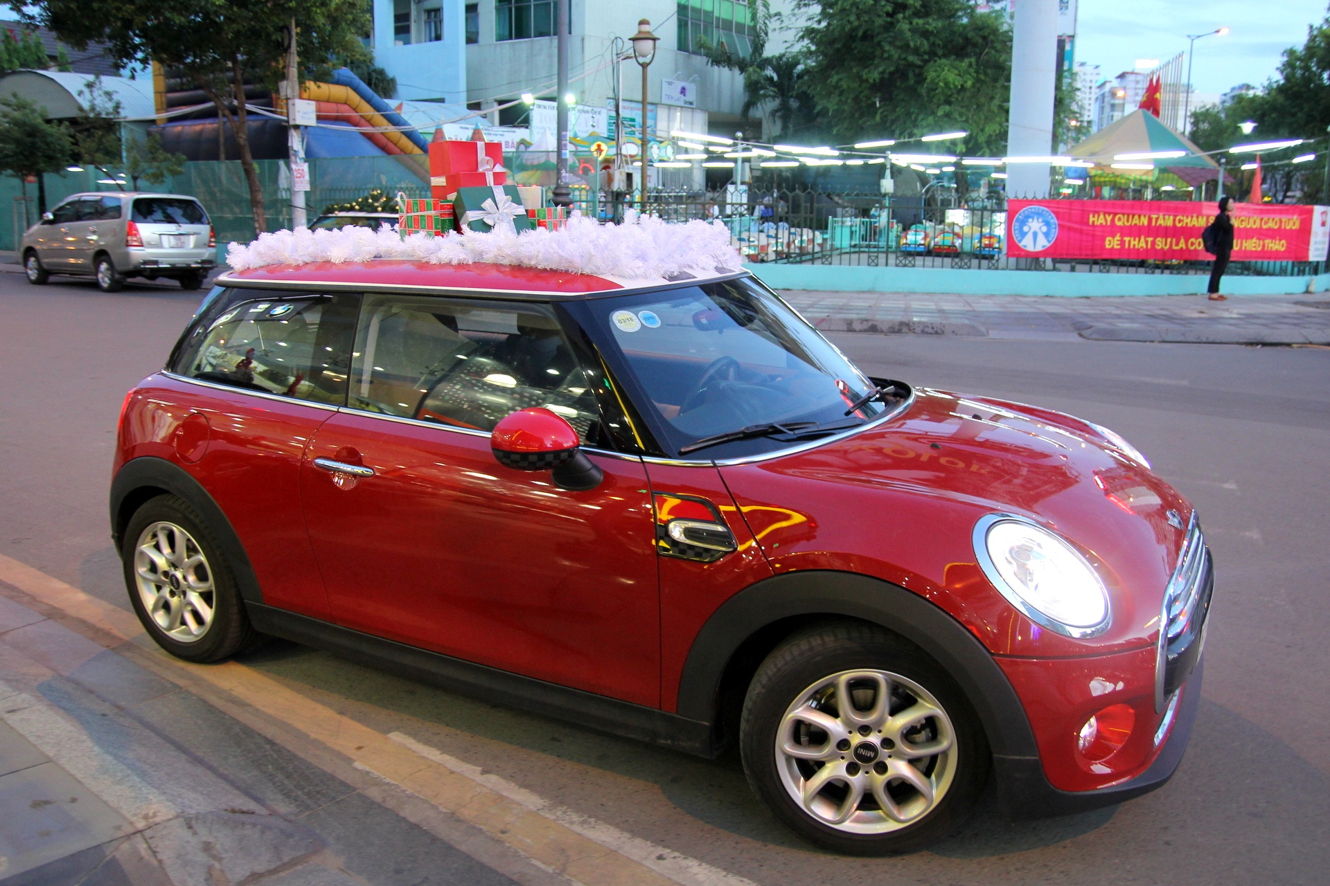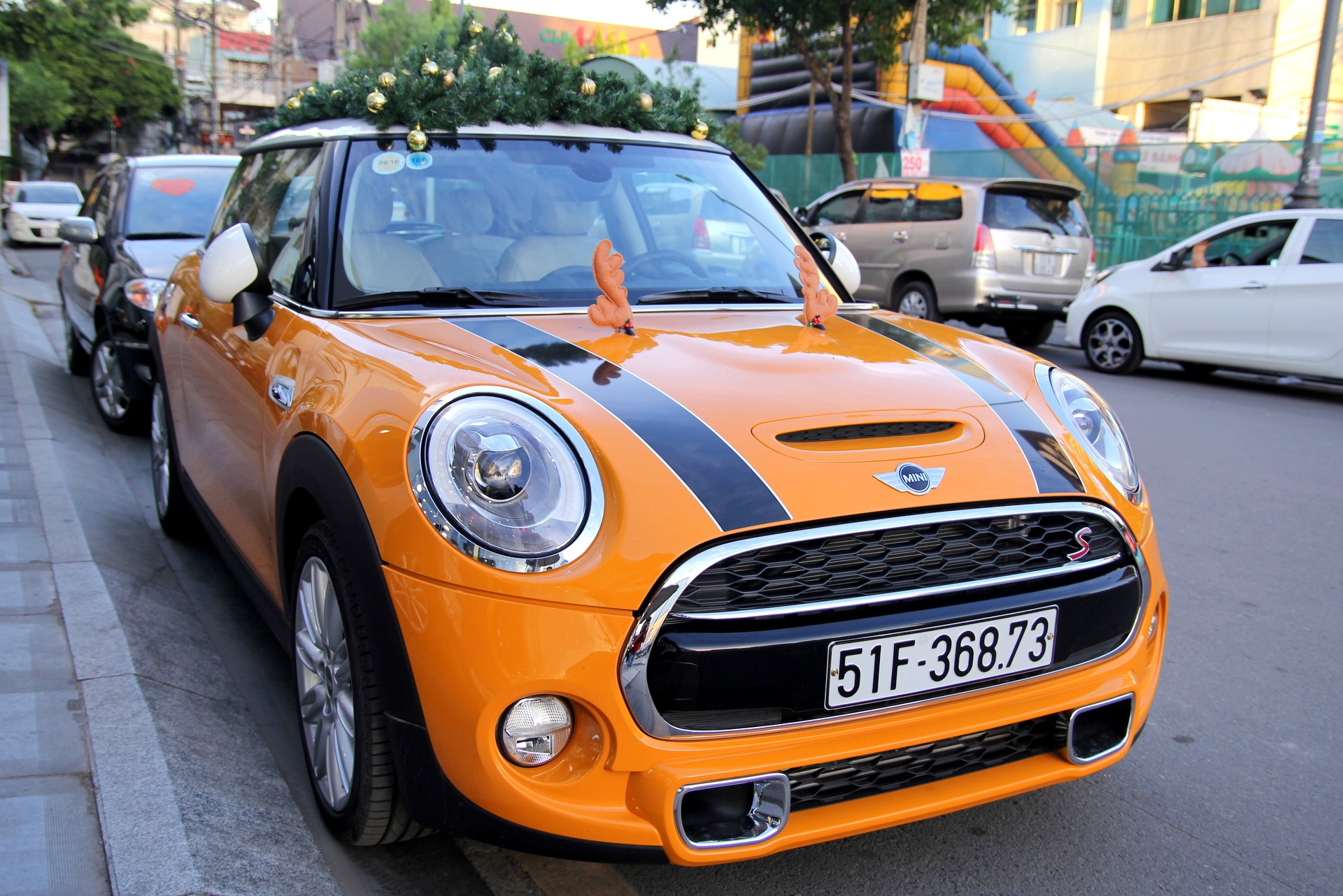 Đây là chiếc Mini Cooper S được trang trí theo phong cách cây thông Noel tại TP HCM. Phần nắp ca-pô được gắn thêm sừng tuần lộc khá dễ thương.
