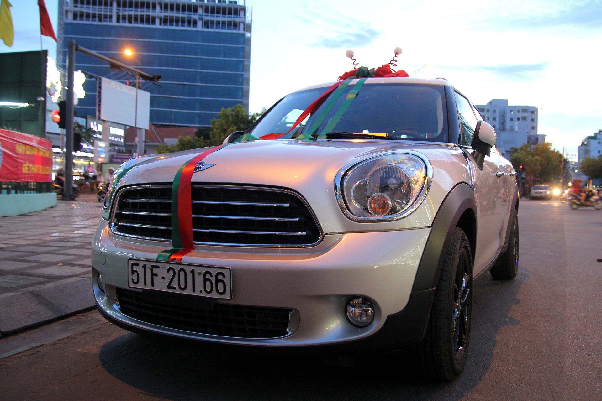 | Cuối cùng là mẫu Cooper Countryman màu ghi được trang trí kiểu hộp quà. Countryman có giá 1,499 tỷ đồng cho phiên bản thường và 1,698 tỷ đồng cho bản thể thao. |