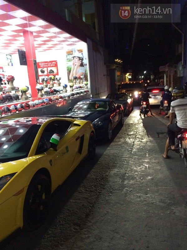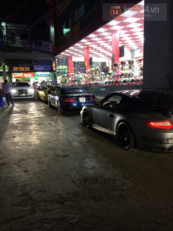 Tối qua (6/12), tại một tụ điểm ăn chơi tại TP. HCM, dàn xe sang của nhóm thiếu gia Sài thành bất ngờ hội tụ, khiến nhiều người trầm trồ. Trong đó có các loại xe đình đám như Porsche, Hummer phiên bản đặc biệt trong quân đội, Lamborghini, Rolls-Royce.