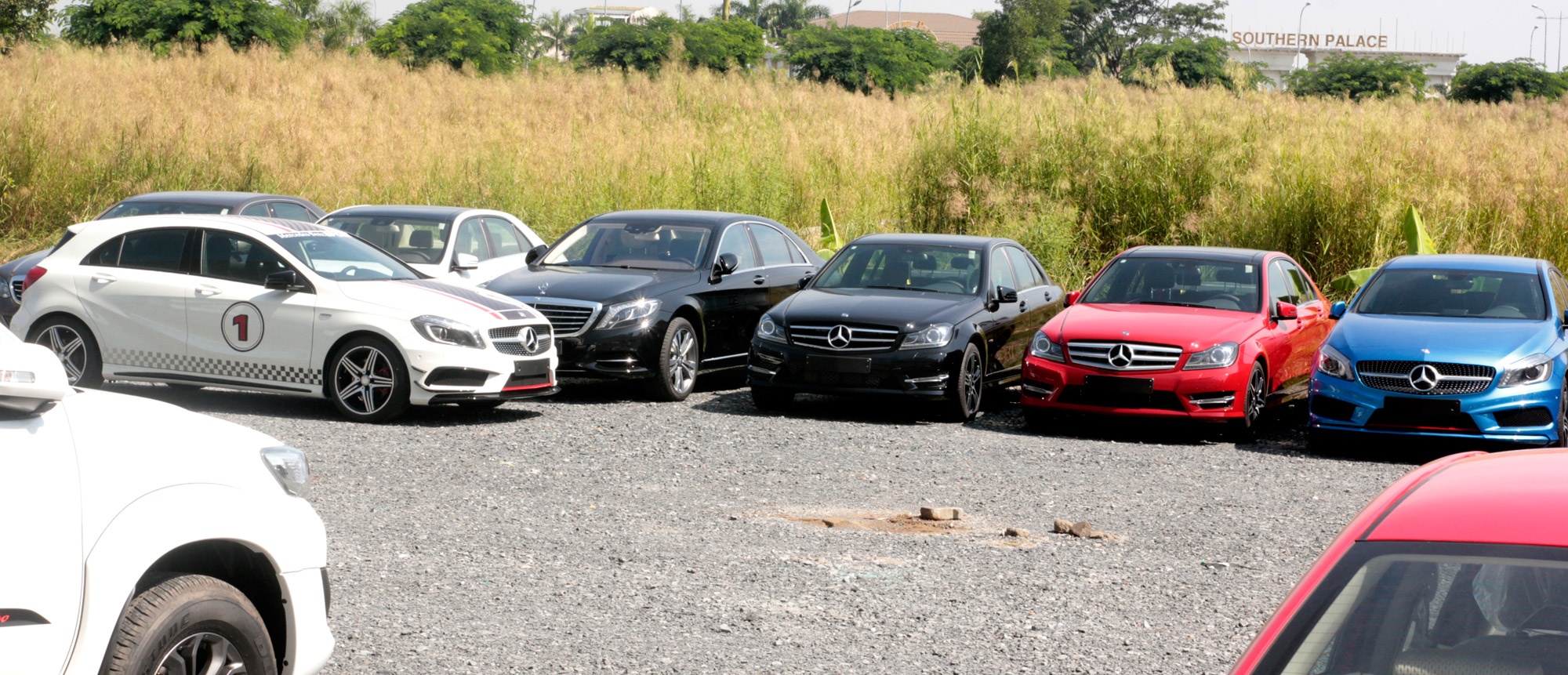 | Dàn xe Mercedes-Benz ở điểm tập kết. |