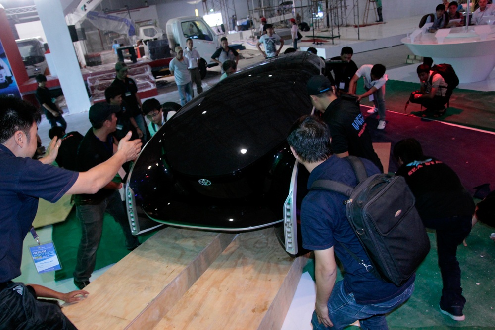 Bên trong triển lãm, một số gian hàng của các nhà sản xuất và kinh doanh ô tô như Honda Việt Nam, Renault đã hoàn thiện. Các mẫu xe mang đến triển lãm đã được phủ bạt. Bên cạnh đó là một số hoạt động biểu diễn, tập dượt cho các ngày chính thức diễn ra triển lãm. Các gian hàng khác của Audi, Mercedes-Benz, BMW Euro Auto, Toyota - Lexus, Nissan - Infiniti vẫn đang được hoàn thiện. Hàng loạt mẫu xe mới đã được đưa vào vị trí trưng bày.