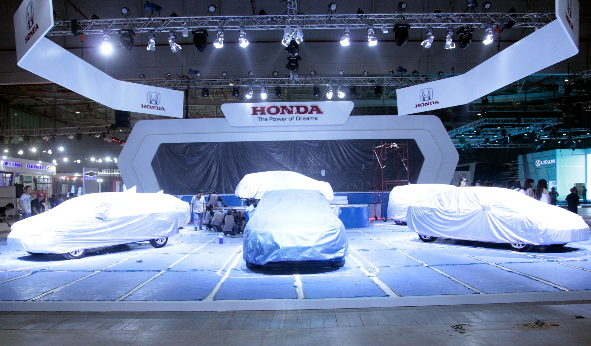 | Dàn xe của Honda đã vào vị trí trưng bày một ngày trước khi Vietnam Motor Show 2013 diễn ra. |