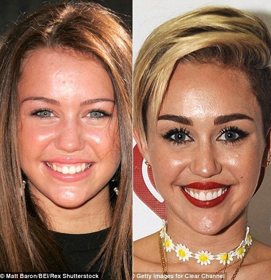 | Miley Cyrus (trái) vào năm 2007 và (phải) năm 2015. |
