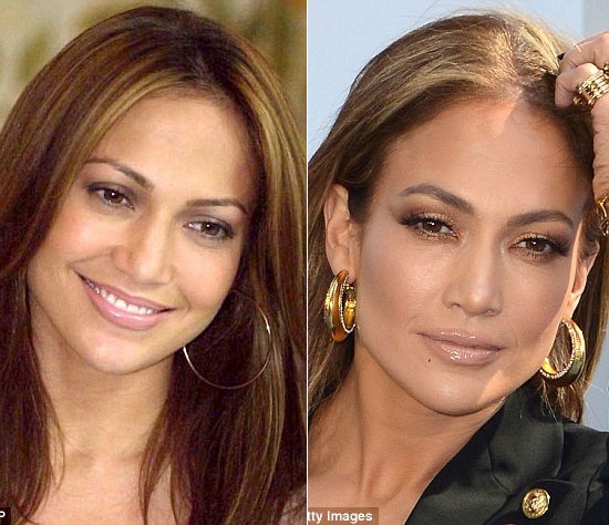 | Jennifer Lopez nuôi dưỡng lông mày trẻ trung hơn trong năm 2015 (ảnh phải) và ảnh trái là vào năm 2000. |