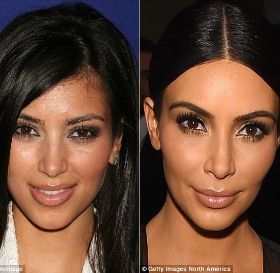 | Kim Kardashian ưu ái lông mày rậm. Tuy nhiên, trước đây khung lông mày nhọn và hiện tại thì hình vòng cung. |