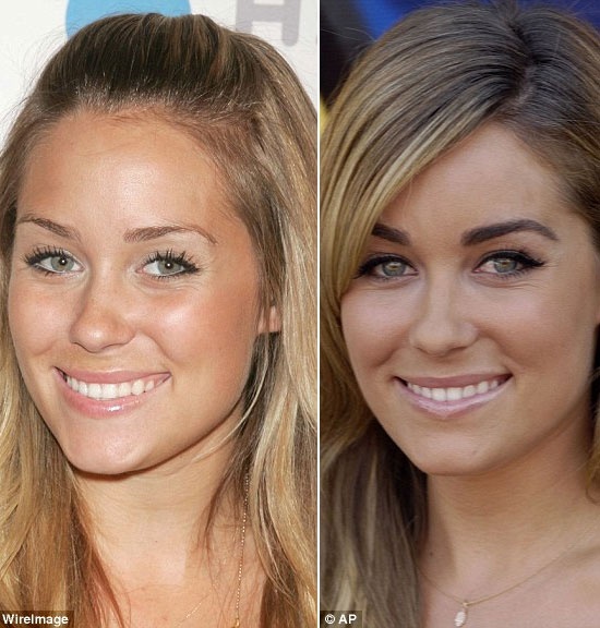 | Lauren Conrad (trái) vào năm 2005 và năm 2007, cô thay đổi tạo kiểu lông mày đẹp hơn. |