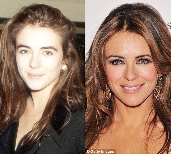 | Elizabeth Hurley hồi năm 1989 (trái) sở hữu lông mày rậm nhưng trong năm 2012 (phải), cô thay đổi lông mày thanh mảnh, tinh tế hơn. |