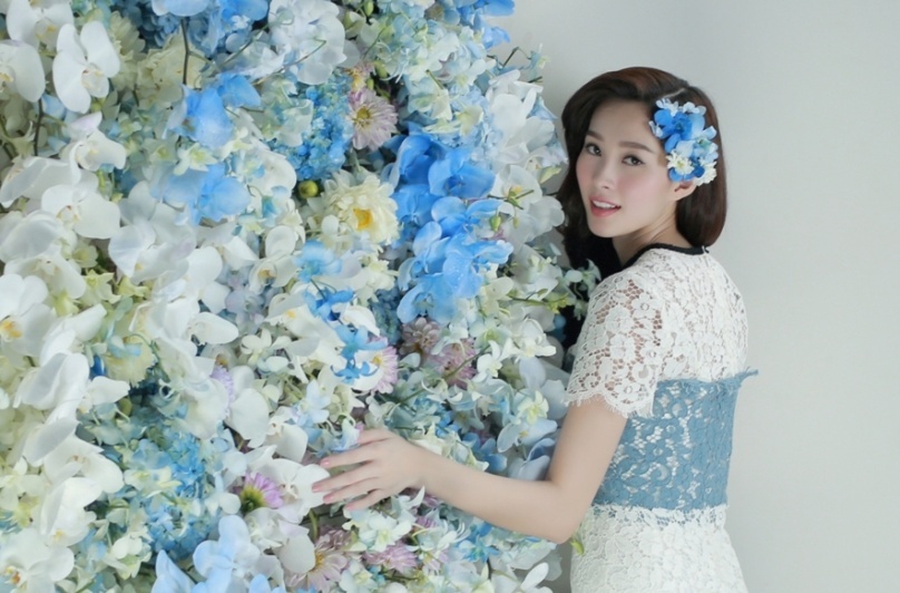 Trong bộ ảnh mới chụp cùng những đóa lan xanh, cô chiếm trọn cảm tình của fan bằng nét tươi tắn và sự nữ tính.