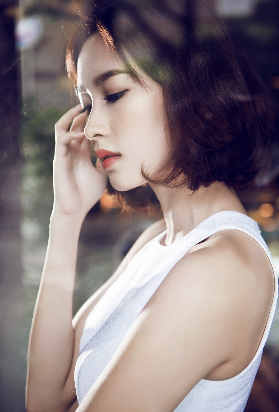 Hoa hậu 24 tuổi chọn kiểu tóc bob để làm mới hình ảnh, đồng thời duy trì phong cách thanh thoát, dịu dàng với loạt trang phục cổ điển.