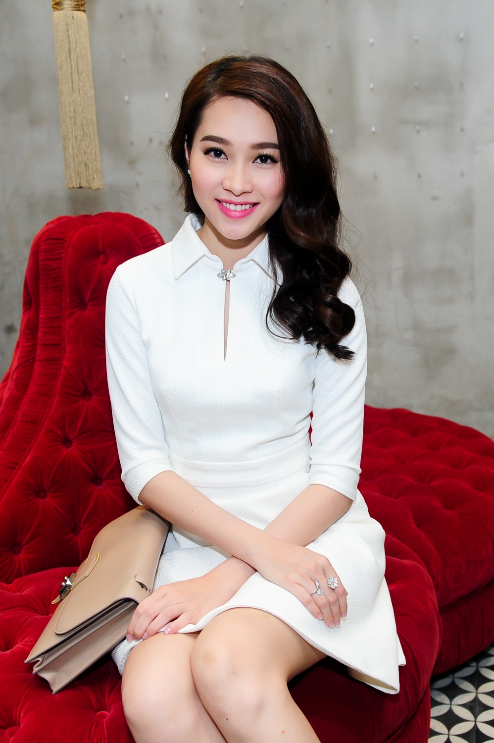 | Trang phục tông trắng tinh khiết tôn nét đẹp yêu kiều của hoa hậu. Tông trang điểm nhẹ cùng kiểu tóc xoăn nữ tính giúp người mặc ghi điểm phong cách. Không chỉ tham gia chấm thi thử thách chụp ảnh party Giáng sinh, Đặng Thu Thảo còn kết hợp cùng top 10 thể hiện những hình ảnh mới. |
