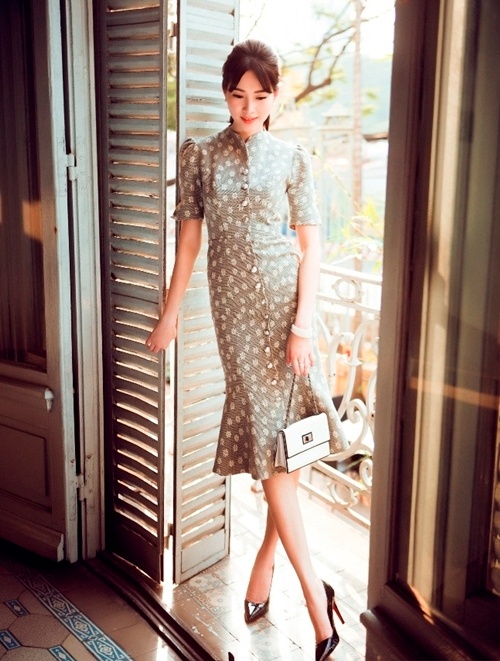 | Thu Thảo sở hữu rất nhiều kiểu váy midi từ ôm tới xòe, đủ giúp cô nổi bật mỗi khi xuất hiện. |