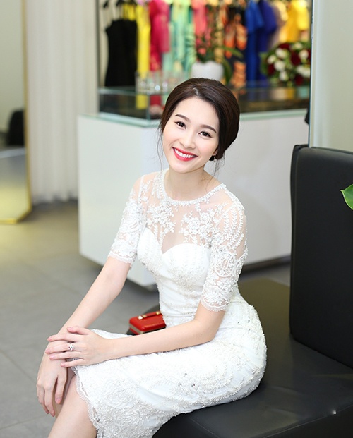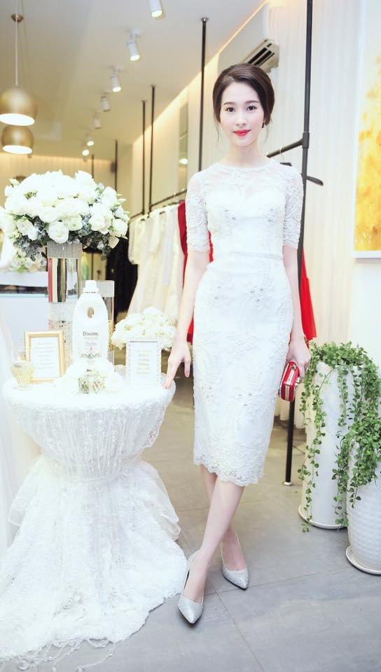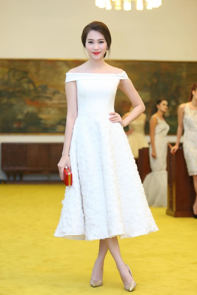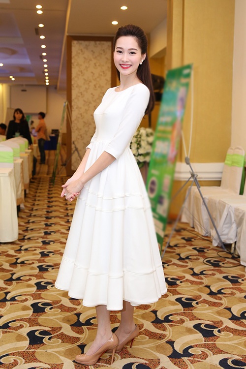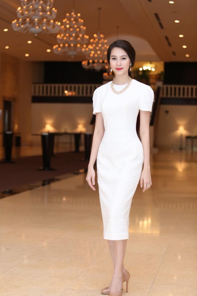 | Đầm midi tông màu trắng được cô ưa chuộng mặc trong các sự kiện. |