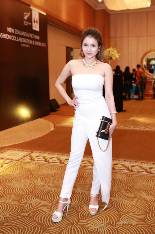 | Trang phục trắng phá cách của Thủy Top được nhiều tín đồ thời trang khen ngợi. Bộ cánh hoàn hảo hơn nhờ giày cao gót đồng màu. Clutch tông đen mix ăn ý. Thiết kế khéo khoe bờ vai trần gợi cảm. |