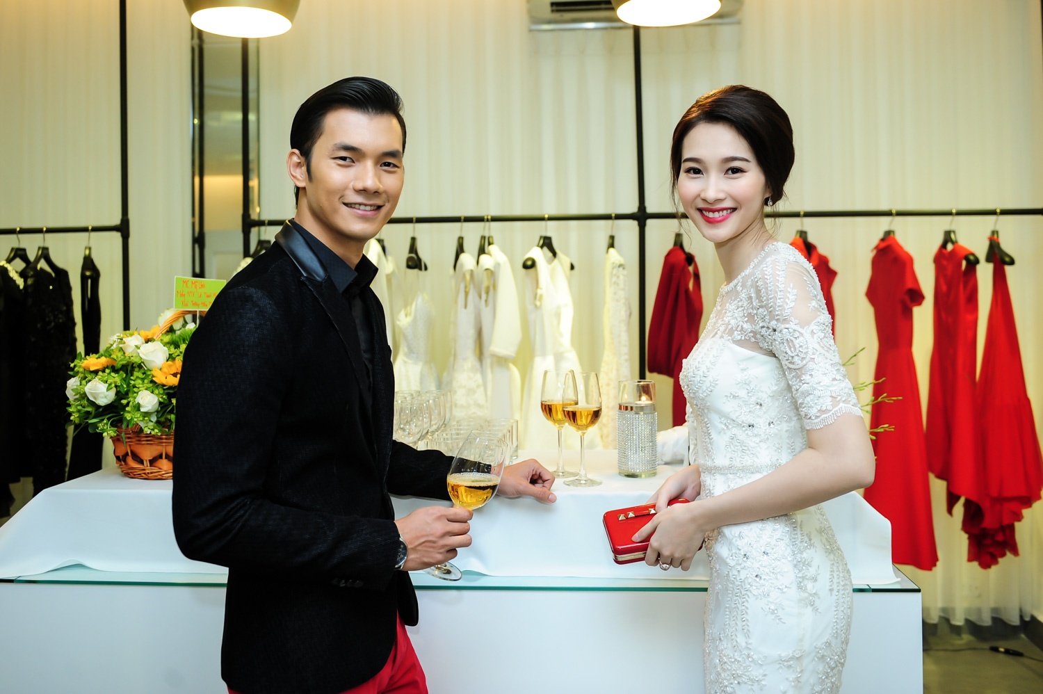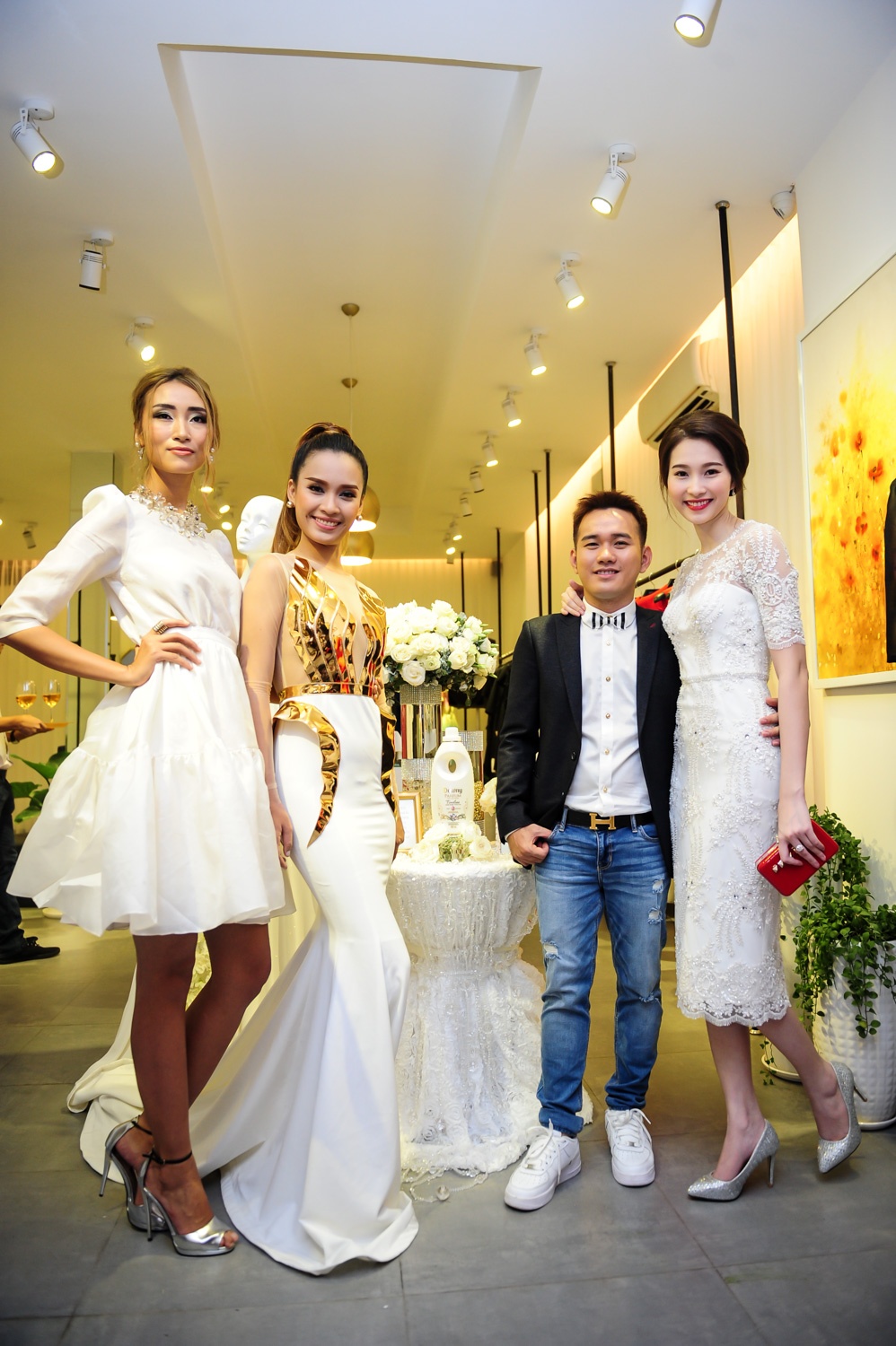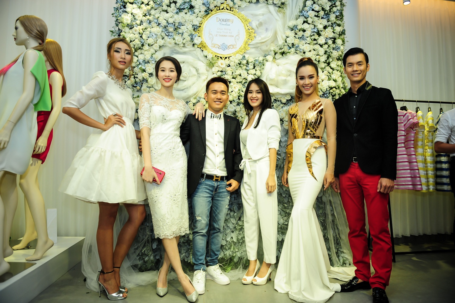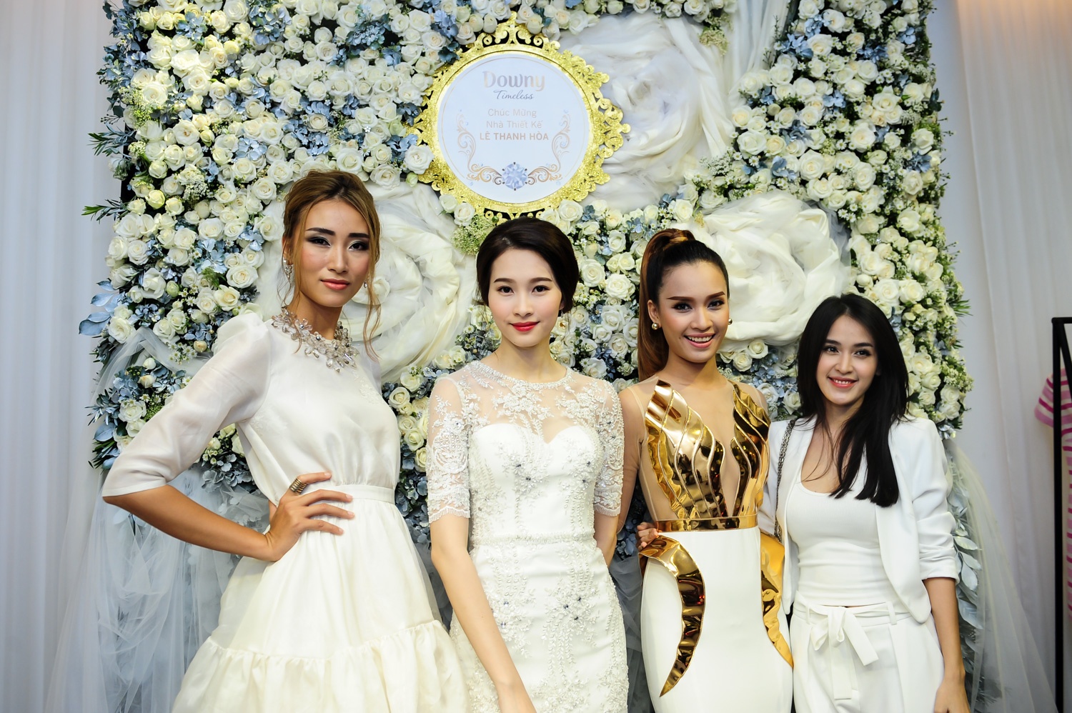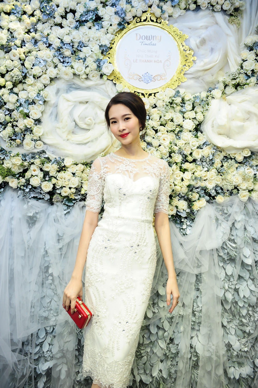 Đến chúc mừng nhà thiết kế Lê Thanh Hòa ra mắt BST mới, HH Đặng Thu Thảo, diễn viên Nhan Phúc Vinh cùng nhiều người đẹp khác đều đồng loạt chọn trang phục tông trắng tinh khôi.
