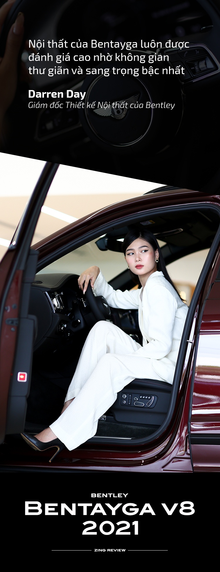 Với tôi, bên cạnh sự sang trọng từ vật liệu và thiết kế, hai thứ đáng giá nhất khi ngồi bên trong chiếc Bentley Bentayga V8 là sự tĩnh lặng và êm ái. Khả năng cách âm gần như tuyệt đối khiến không chỉ người bên trong xe không nghe thấy tiếng bên ngoài, mà đứng ngay cạnh cửa xe tôi cũng không thể nghe được nhạc qua chiếc smartphone đặt bên trong. Sự êm ái khi vận hành giúp người ngồi trên xe có thể dễ dàng làm việc giống như đang ngồi ở phòng riêng, dù chiếc xe đang lăn bánh trên đường. Động cơ V8 là mảnh ghép cuối, không đơn thuần là chỉ số sức mạnh, mà còn giúp chủ nhân chiếc xe khẳng định vị thế của mình.