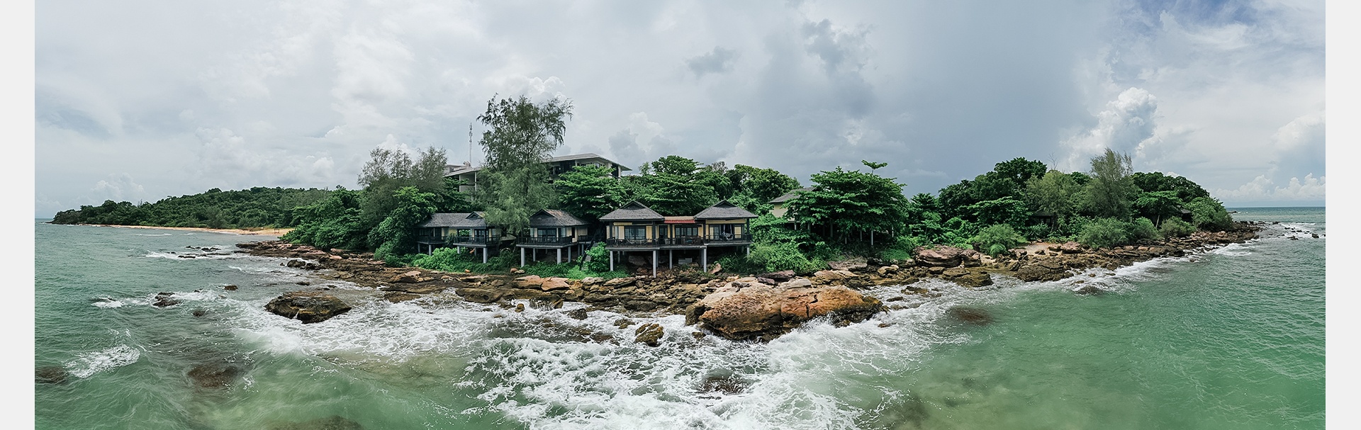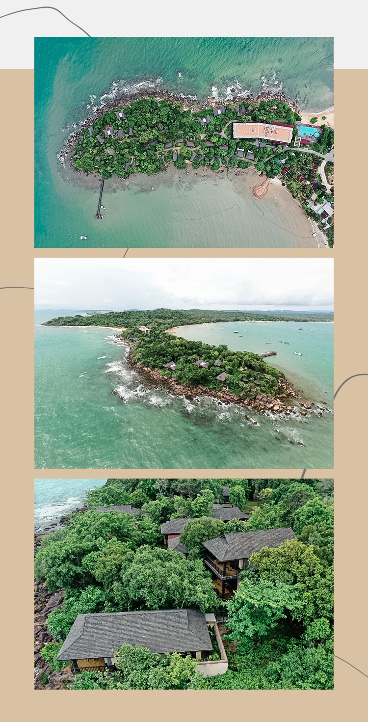 Các căn biệt thự nằm rải rác, xen kẽ giữa tán cây to. Ngồi ở ban công nhỏ phía sau căn phòng, du khách có thể tận hưởng màu xanh của rừng, phía xa xa là biển vỗ rì rào.