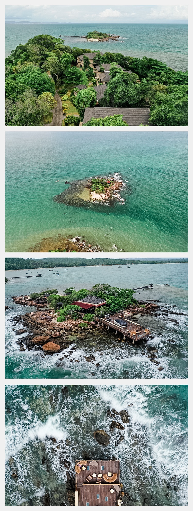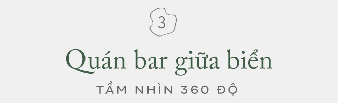 Khi đến nhận phòng, nhân viên lễ tân trao cho tôi tấm bản đồ các khu vực trong resort và cách đến nơi. Trong đó, Rock Island Club với vị trí tách biệt đất liền ngay lập tức thu hút tôi. Quán bar có tầm nhìn 360 độ bao quát ra biển, với bãi đá viền quanh. Nhiều người tìm đến đây để tận hưởng hoàng hôn trên biển đẹp nhất Việt Nam.