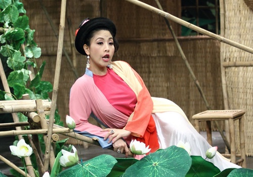 Ngọc Lan hóa thân thành nàng Tấm hiền lành nhưng mê trai, còn Hoàng Sơn là ông Bụt bị... khùng. |