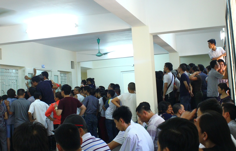 Sáng 26/6, TAND Hà Nội mở phiên tòa sơ thẩm xét xử 8 bị cáo về hành vi Giết người. Hàng trăm người là thân nhân của các bị cáo đã đến dự khán. Căn phòng 301 không đủ chỗ ngồi, nhiều người đứng trước cửa xô đẩy nhau, thậm chí có thanh niên trèo lên cửa sổ để ngó vào phòng xử.