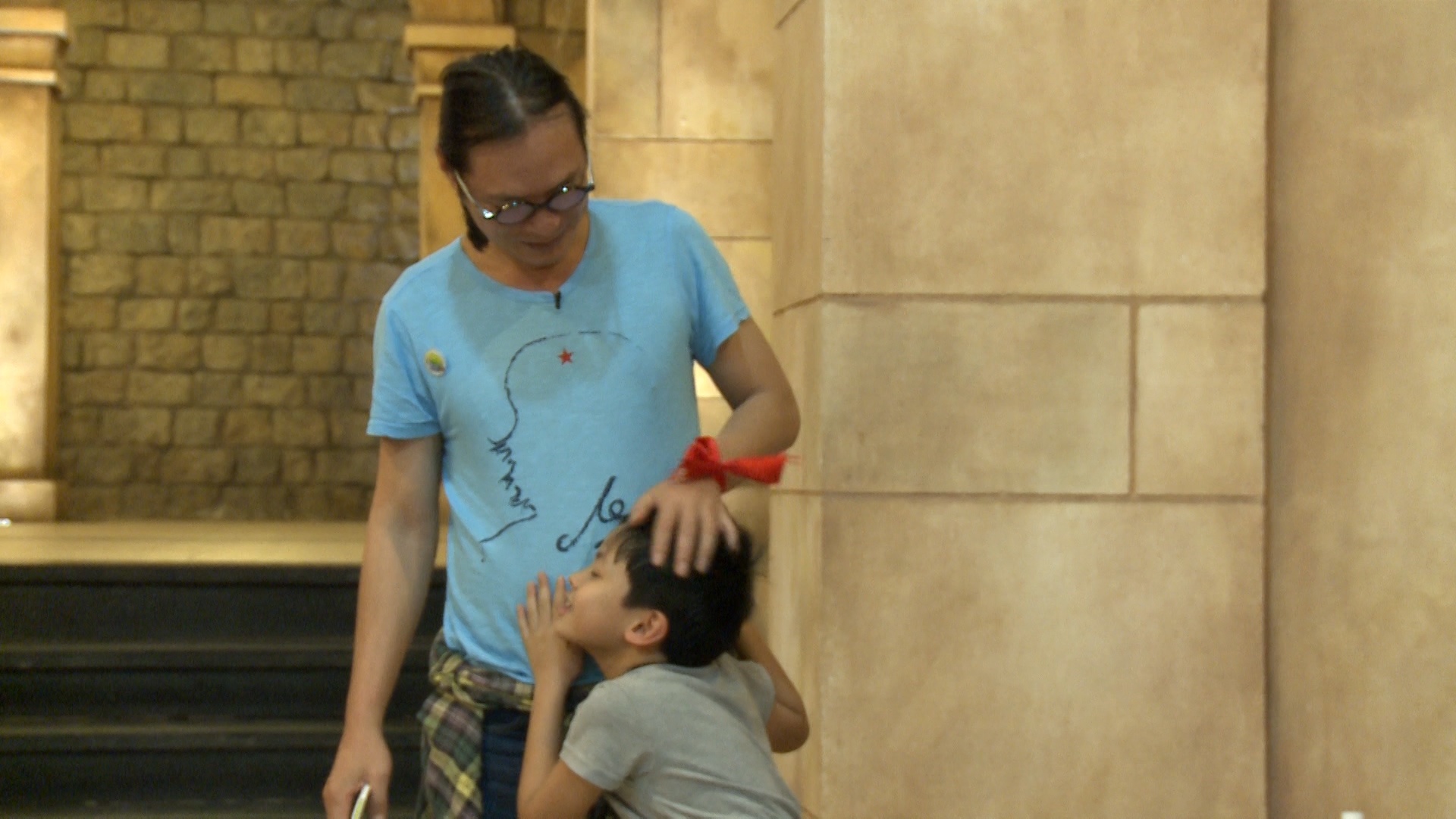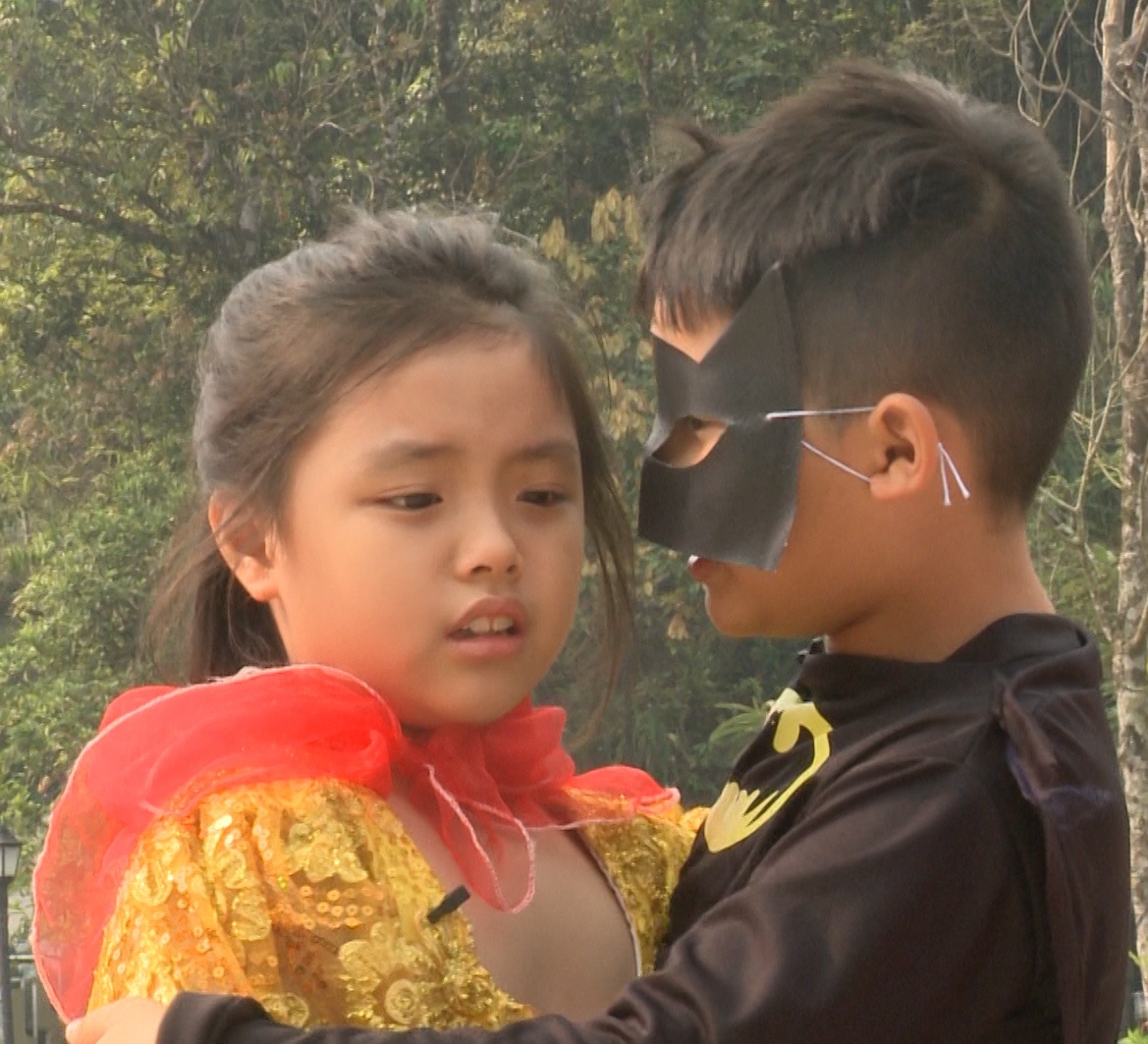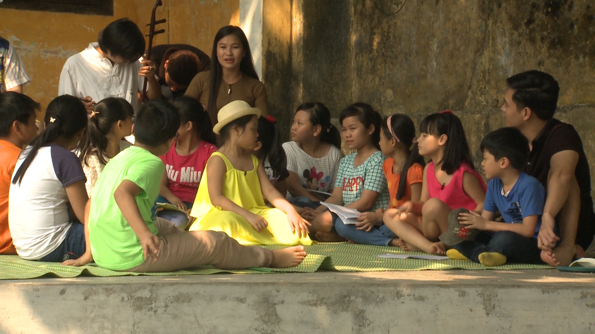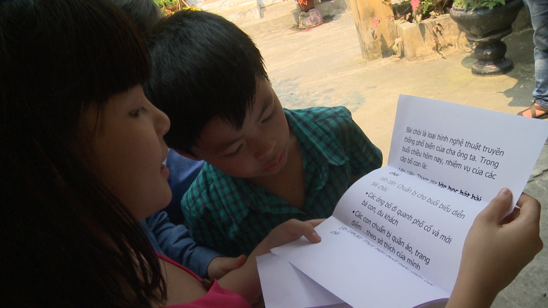 Các bố có nhiệm vụ luyện tập và đi mời khách đến xem buổi diễn bài chòi. Còn các bé hỗ trợ, chuẩn bị trang phục.