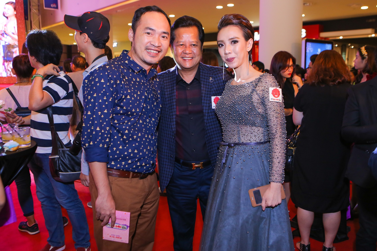 | Miu Lê thu hút mọi người khi diện chiếc đầm sexy, in tên phim Em là bà nội của anh. Sau 2 năm tập trung ca hát, cô mới trở lại đóng phim. |