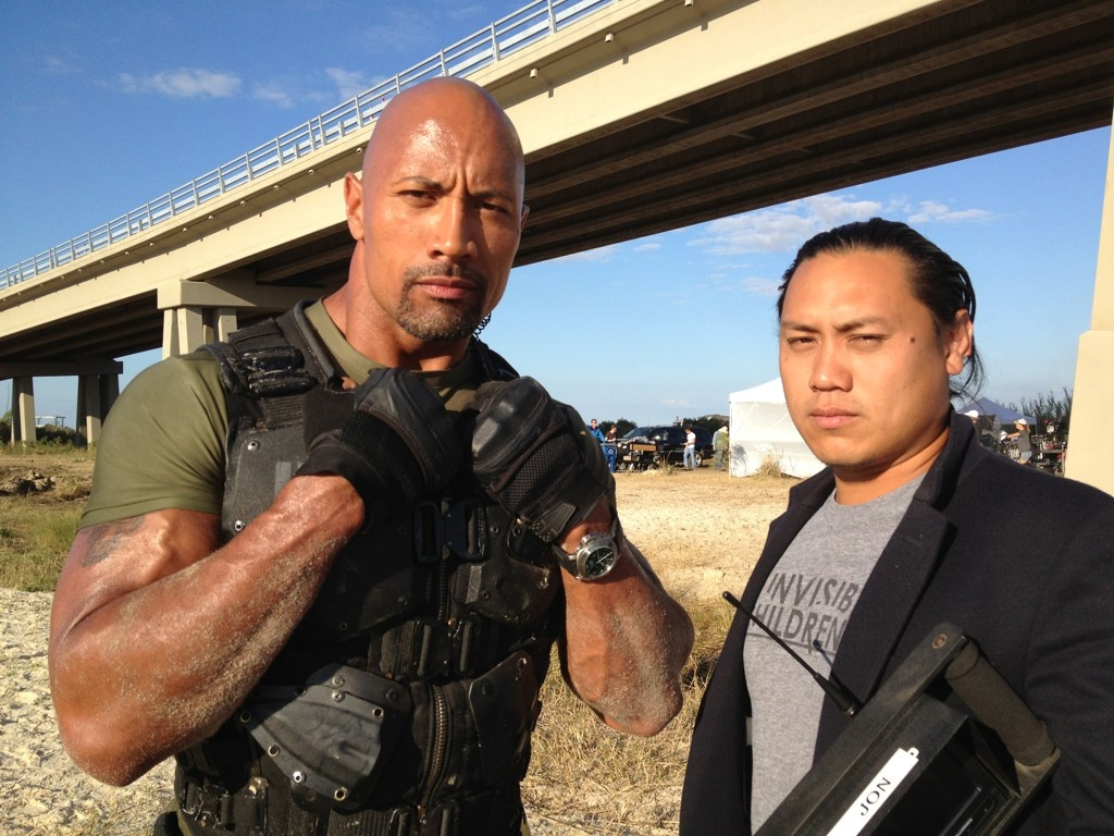 | Đạo diễn Jon M. Chu (phải) trên phim trường của G.I. Joe: Retaliation, tác phẩm hành động ăn khách hồi năm 2013. |