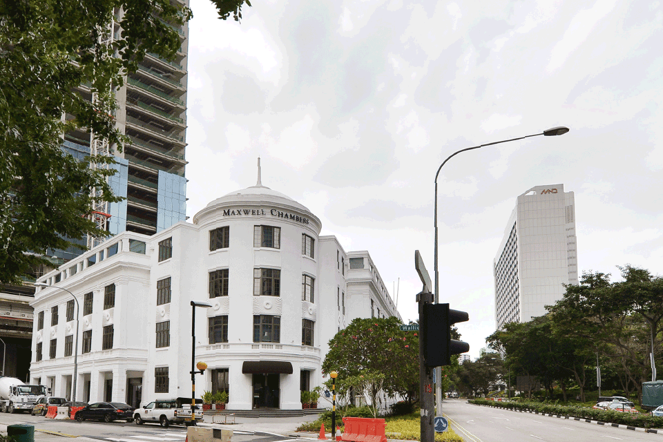 Tòa nhà Maxwell Chambers tọa lạc ở góc đường Maxwell năm 1974 và diện mạo mới năm 2015. Sau khi sửa chữa vào năm 2010, Maxwell Chambers là nơi tọa lạc của Trung tâm hòa giải tranh chấp tổng hợp quốc tế, với nhiều trang thiết bị hiện đại.
