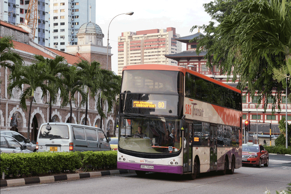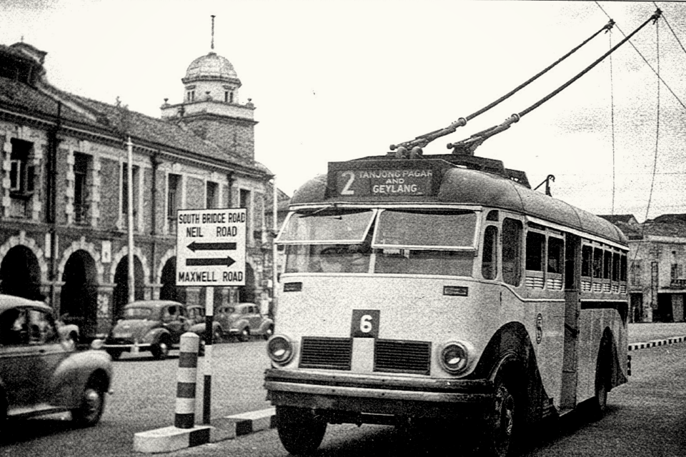 | Quang cảnh đường Tanjong Pagar vào đầu những năm 1960 và ngày nay. Các phương tiện giao thông công cộng đã thay đổi theo thời gian. Trong những năm 1900, người dân thành phố di chuyển chủ yếu bằng những toa xe kéo. Sau thế chiến thứ II, chính quyền thay thể phương tiện này bằng loại xe ba bánh. Dịch vụ xe buýt công cộng hay còn gọi là SBS Transit ra đời năm 1973. |