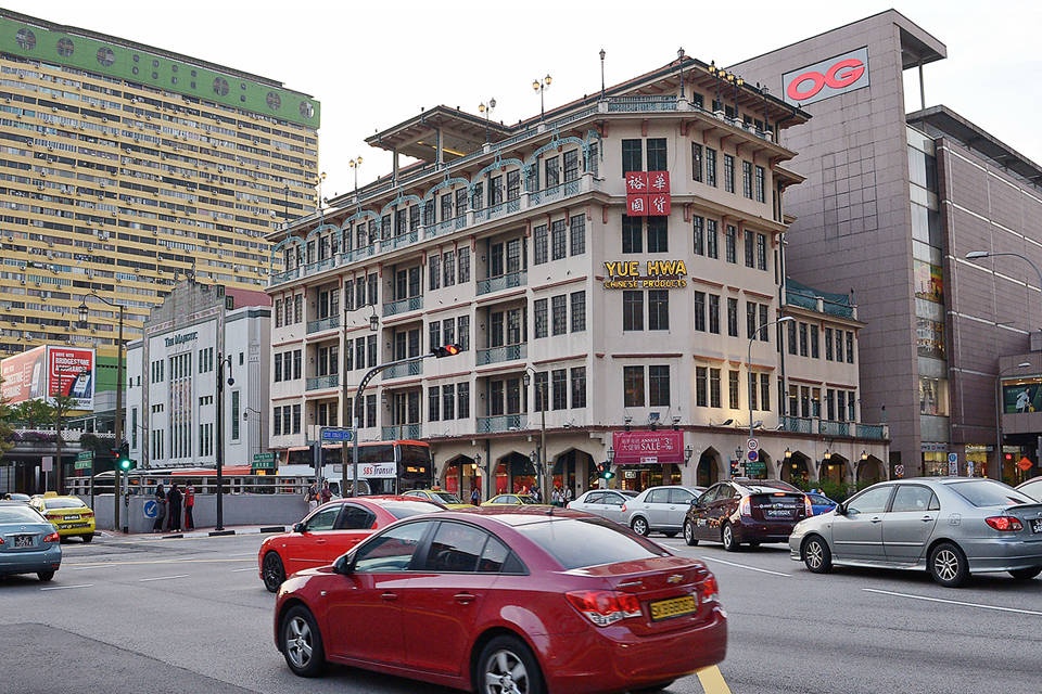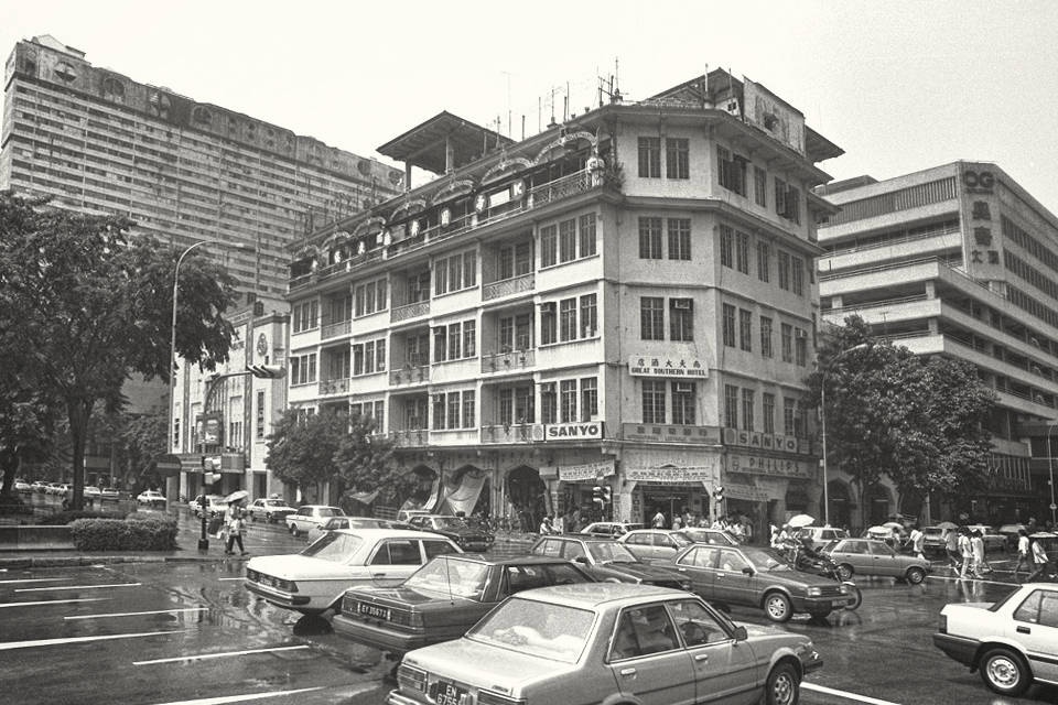 Tòa nhà Yue Hwa tại ngã tư đường Eu Tong Sen và Cross năm 1985 và diện mạo mới 30 năm sau.