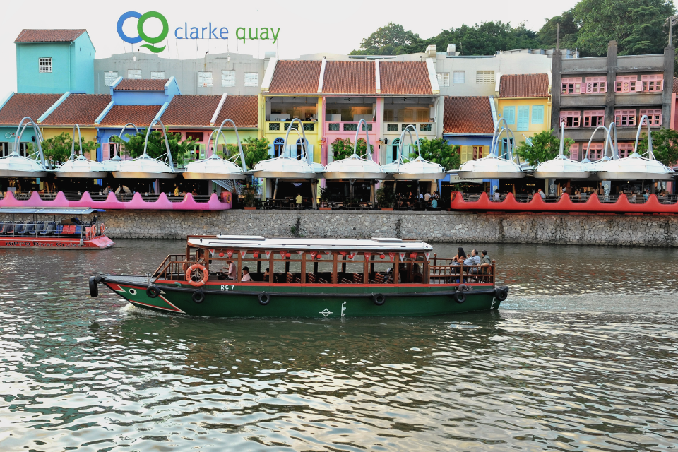 Hình ảnh bến cảng Clarke những năm 1980 và ngày nay. Clarke là cửa ngõ của hoạt động xuất và nhập khẩu hàng hóa dọc bờ sông Singapore từ những năm 1800. Năm 2012, bến cảng đón khoảng 1 triệu lượt khách tham quan mỗi tháng.