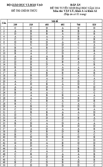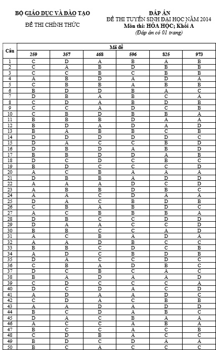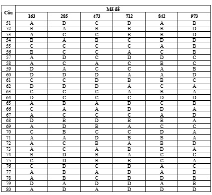 Thí sinh tải file đáp án theo từng môn - với tất cả các mã đề: